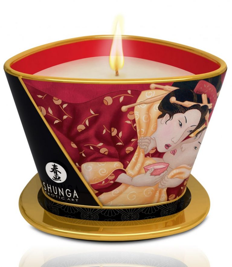Bougie de massage lueur et caresses – Romance Vin pétillant à la fraise