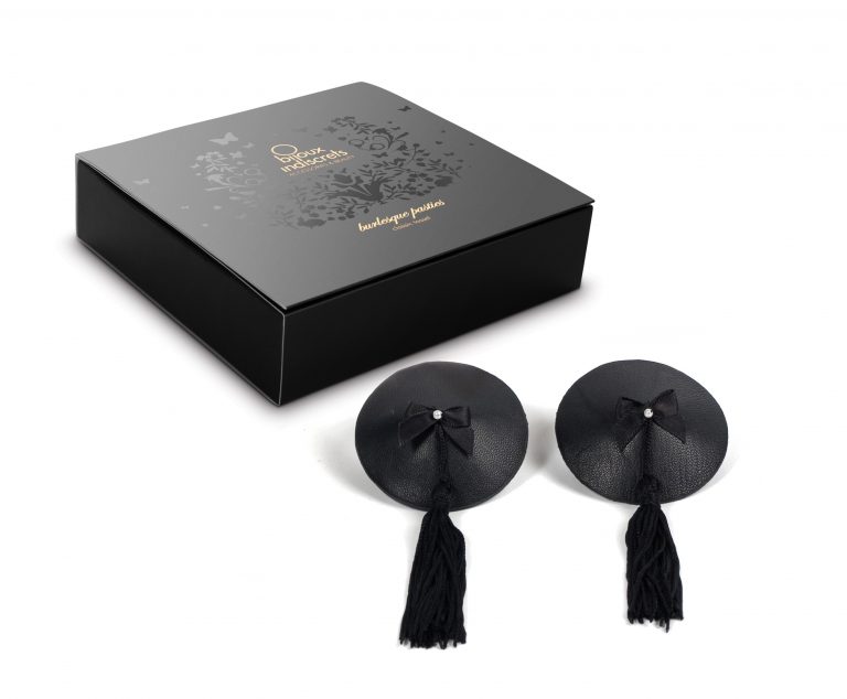 Cache-tétons Burlesque Noeud et Paillettes – Noir