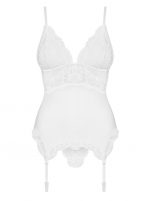 Vous allez devenir une bombe, oui c’est le mot, avec cette superbe guêpière blanche d’un tissu extensible et moulant. Les bonnets sont avec un rembourrage pour le confort et la beauté des seins et bretelles réglables. Une jolie bande de dentelle blanche transparente se trouve sous la poitrine et sublime le dos.De très belle finition pour cette guêpière à laquelle vous pouvez y ajouter des bas (non inclus) grâce aux jarretelles réglables. Le string blanc avec de la dentelle est compris.Composition : 85% Polyamide, 15% Elasthanne