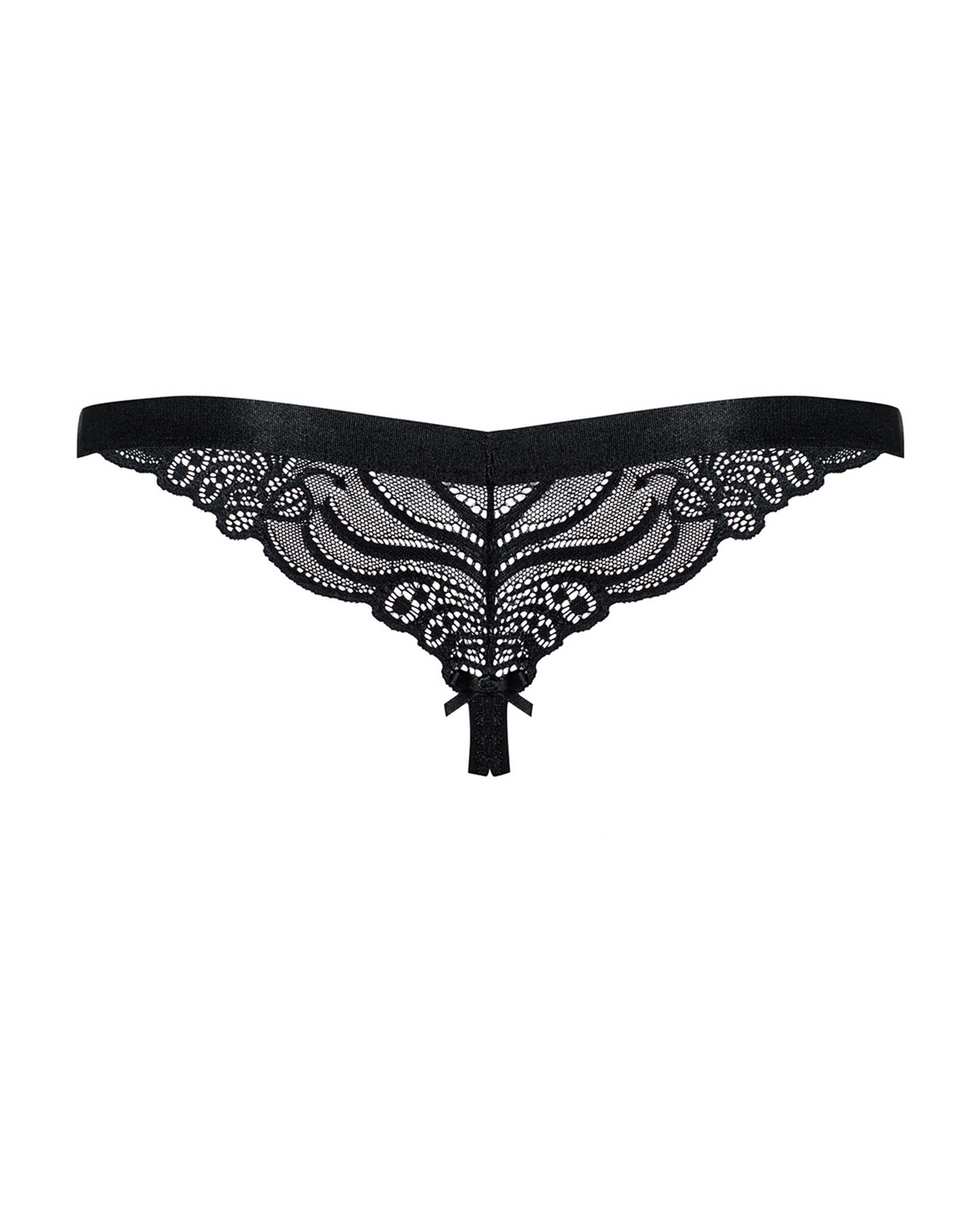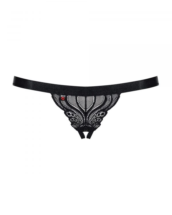 Un string avec dentelle orné de beaux motifs. Une jolie sangle élastique et délicate pour plus de confort. L’entrejambe est ouvert sur ce modèle. 90% Polyamide, 10% Elasthanne