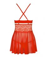 Coquette et sexy ! C’est ainsi que vous vous sentirez dans cette sublime babydoll rouge de la collection Obsessive 838, proposée par votre grossiste en lingerie Tendance Sensuelle. Alliant voilage et fine dentelle, ce modèle aux découpes ajourées est ornée de lanières et d’un bijou de charme qui sublime le décolleté. Bretelles réglables croisées dans le dos pour un confort optimal et un rendu parfait.Composition : 90% polyamide, 10% élasthanne