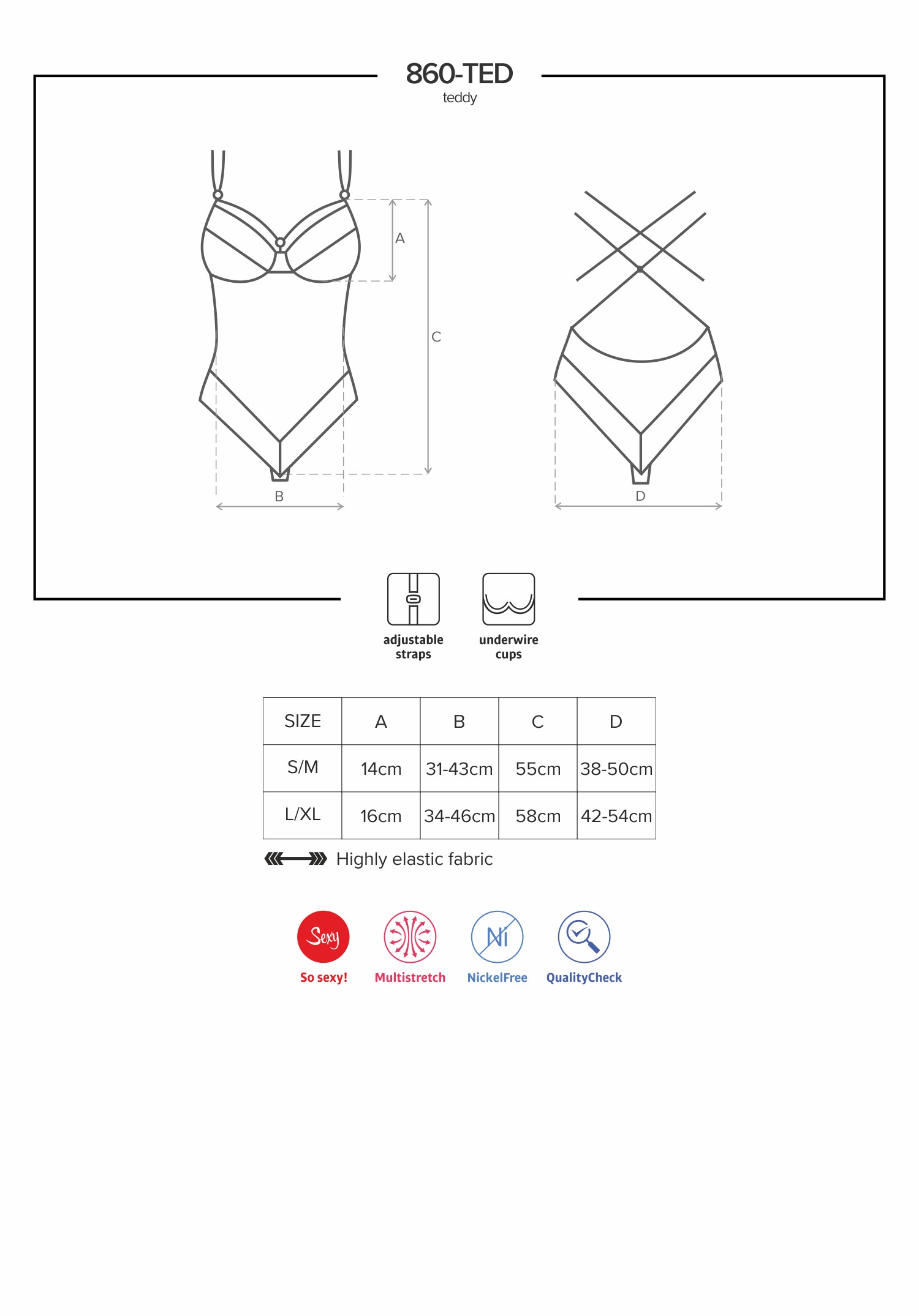 Incroyablement sexy et dangereusement séduisante ! C?est ainsi que vous vous sentirez dans votre body de la collection Obsessive 860 conçu avec la solution Did2Fit pour un ajustement parfait. Une belle dentelle, un charmant motif floral et des lanières endiablées… Préparez-vous à vivre des moments inoubliables avec votre bien-aimé. Commandez-le dès maintenant et lancez un compte à rebours du plaisir? Le soutien-gorge intégré comporte des bonnets à armatures et est orné d’un bijou de charme (NickelFree). Les bretelles sont ajustables pour un maintien optimal.Composition: 90% polyamide, 10% élasthanne