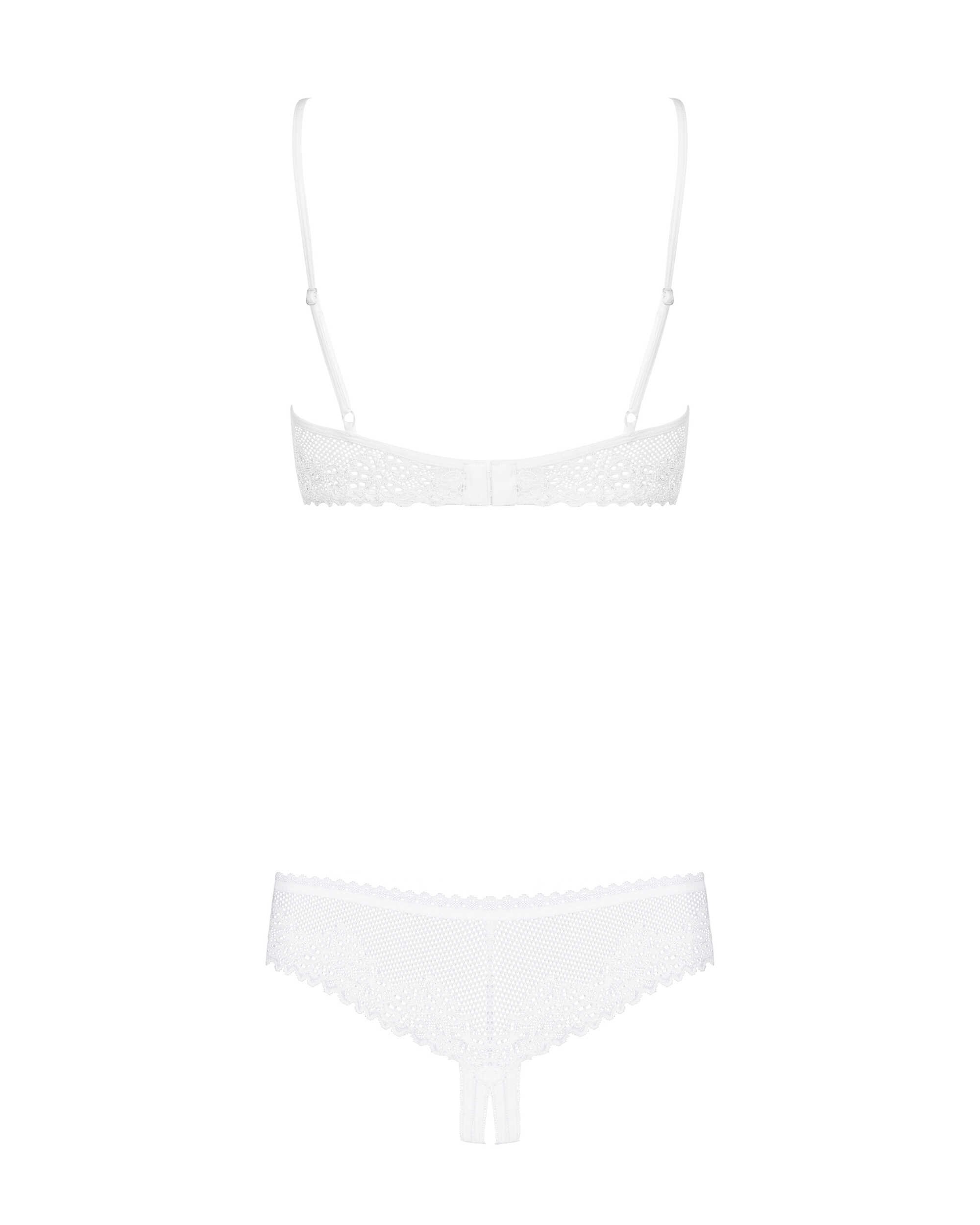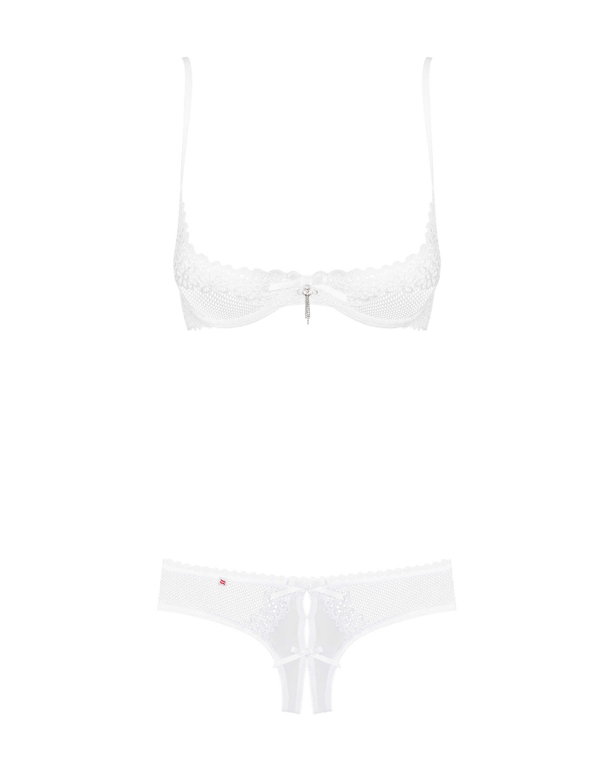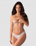 Magnifique ensemble de lingerie blanc qui propose une poitrine ouverte grâce à des demi-bonnets équipés d’une armatures et de bretelles réglables ainsi que des attaches réglables dans le dos pour maintenir fermement les seins. Le shorty qui accompagne cet ensemble de lingerie Obsessive Alabastra est quand à lui ouvert pour plus d’érotisme.un très beau tissu pour cet ensemble de lingerie poitrine et shorty ouvert composé de : 90% de polyamide et 10% d’élasthanne. Découvrez la collection Obsessive Alabastra