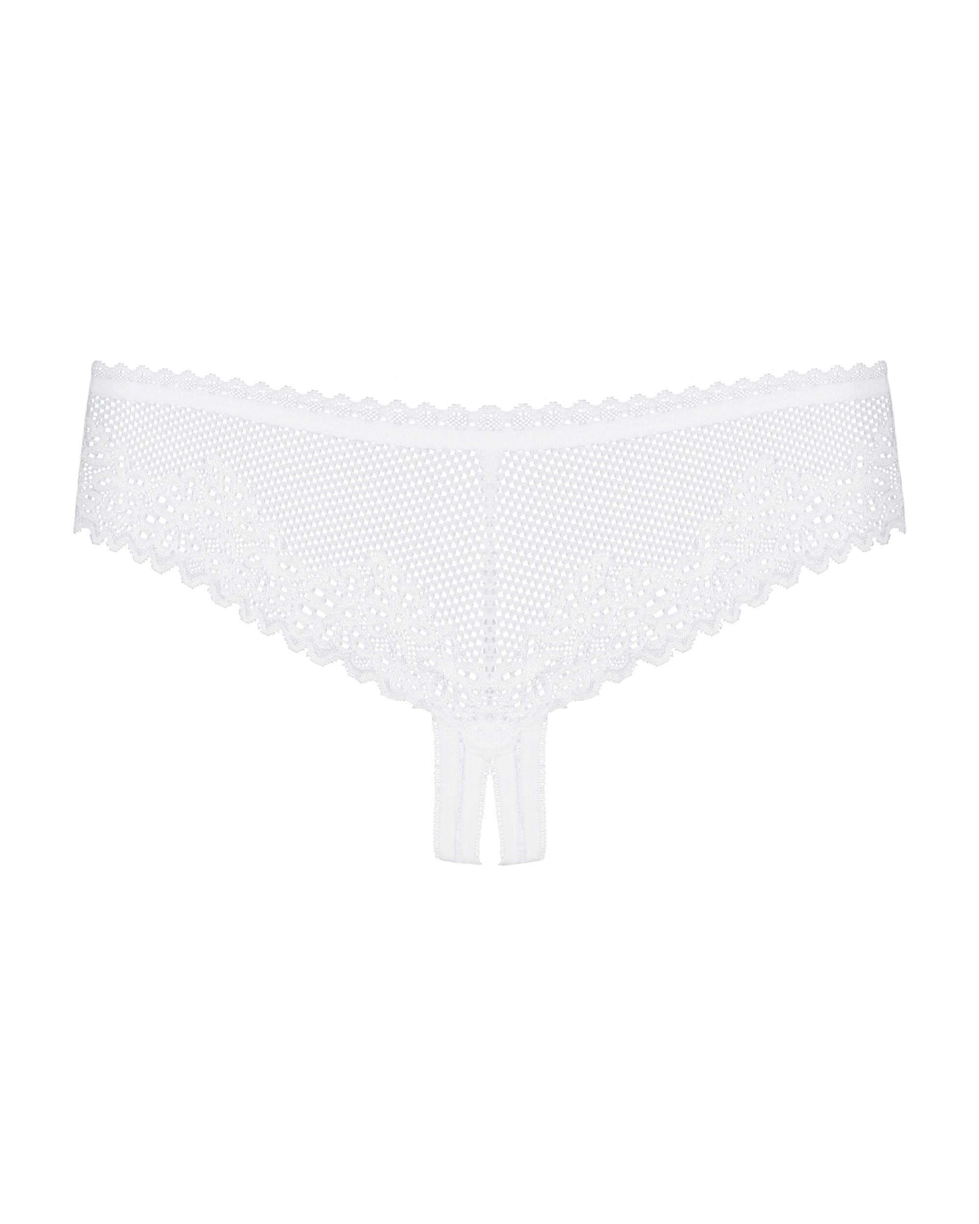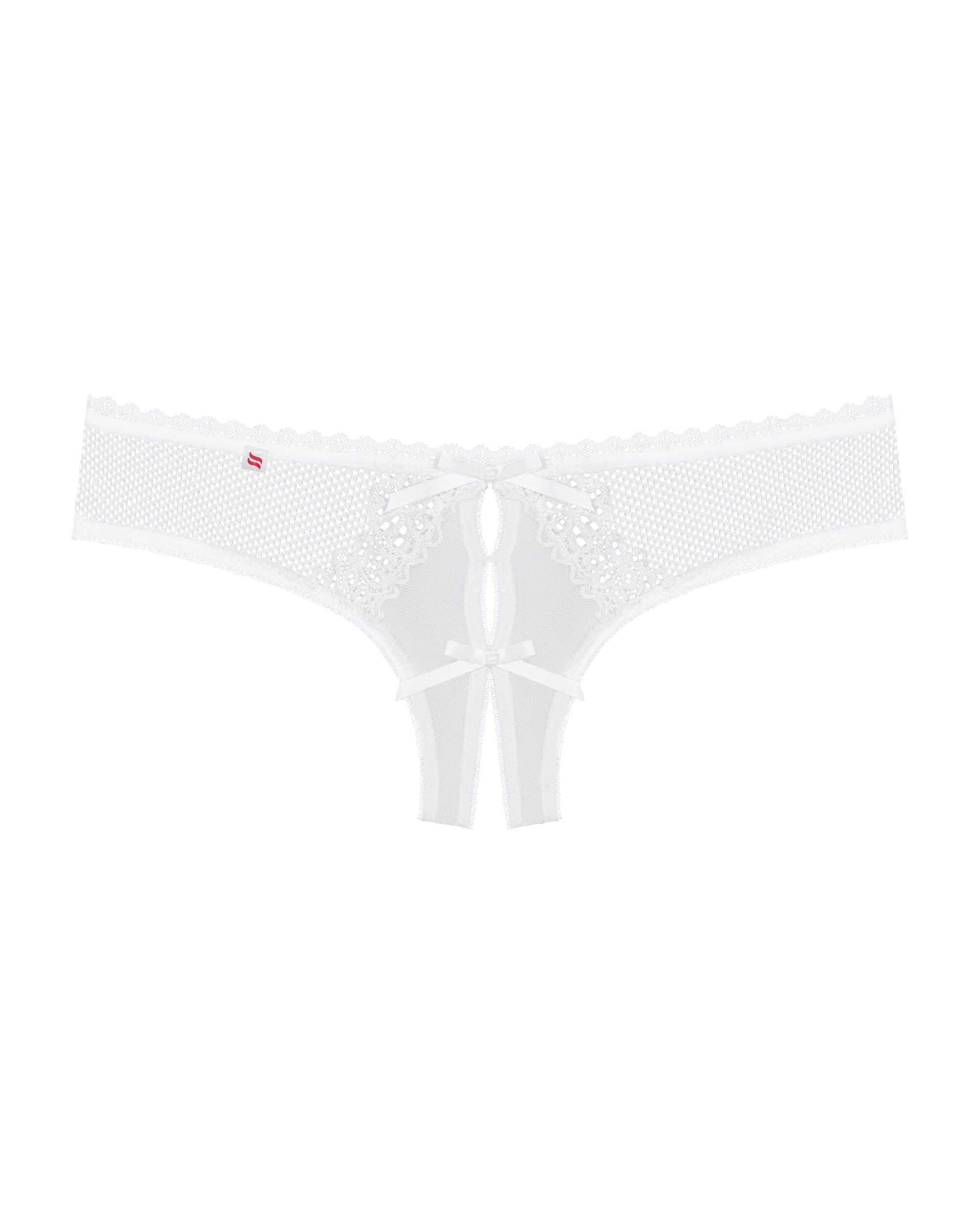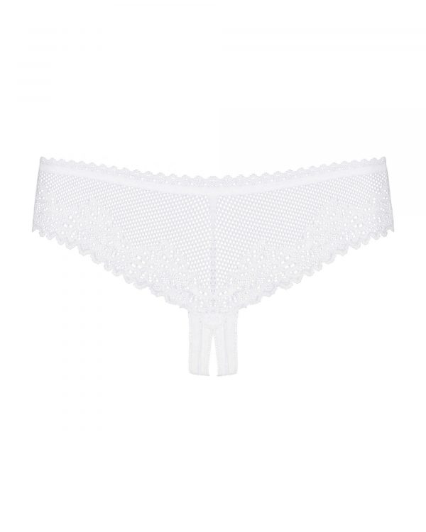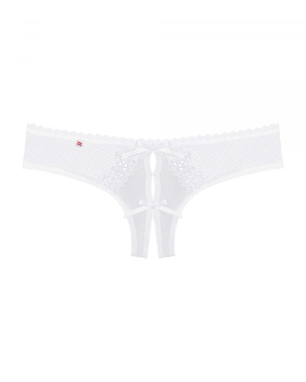 Modèle rare de raffinement pour ce string blanc ouvert à l’entre-jambes issu de la collection Alabastra d’Obsessive. De jolis détails sur un tissu micro résille comme un motif floral sur de la dentelle et un petit noeud de satin blanc sur l’avant.Ce string sexy ouvert est fait d’un tissu élastique et doux composé de : 90% de polyamide et 10% d’élasthanne. Vous aimerez découvrir la collection Alabastra Obsessive