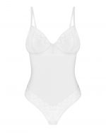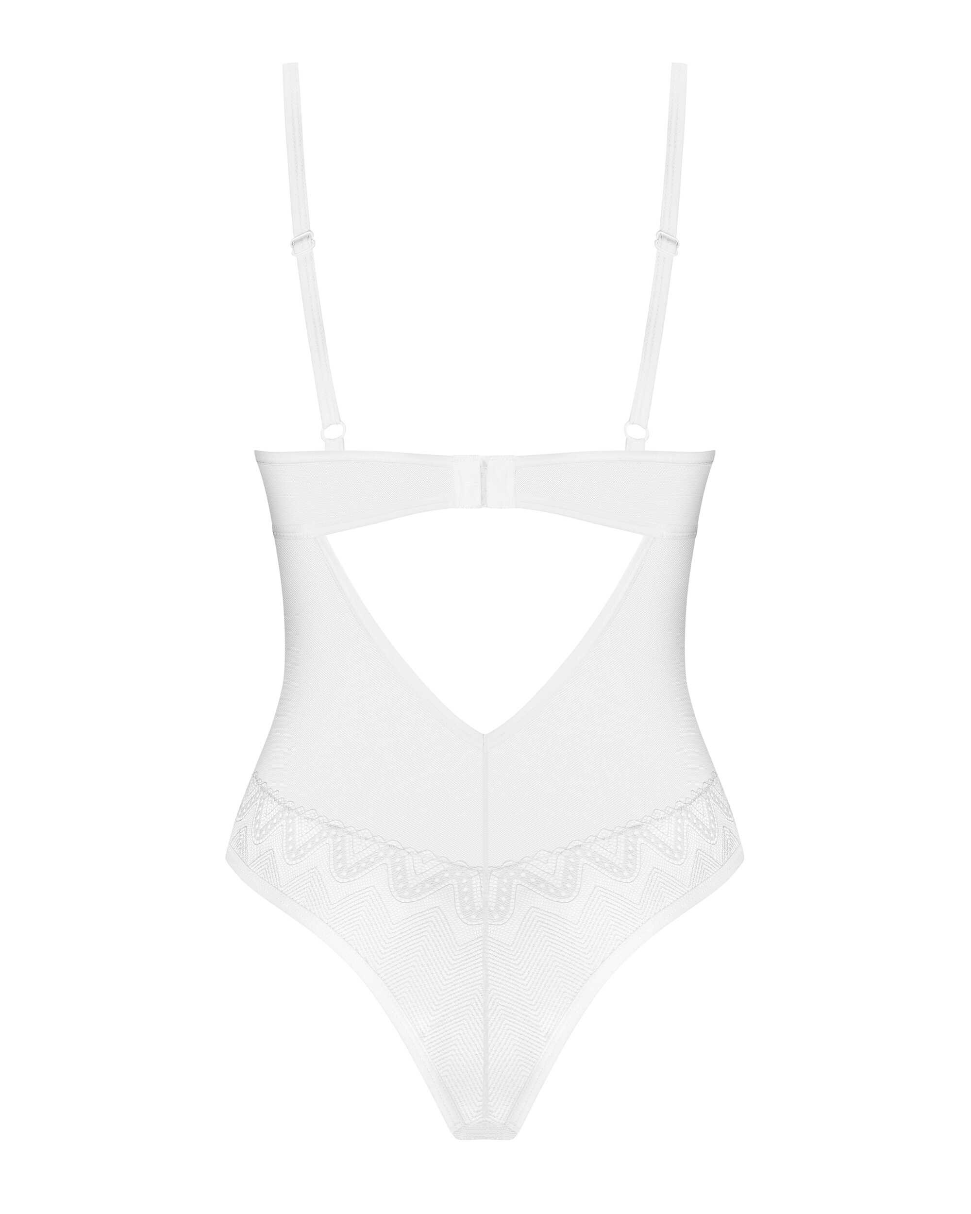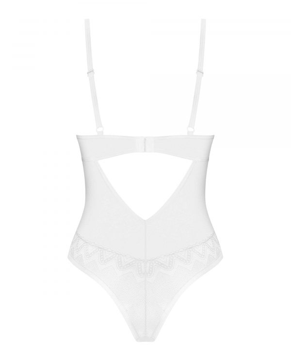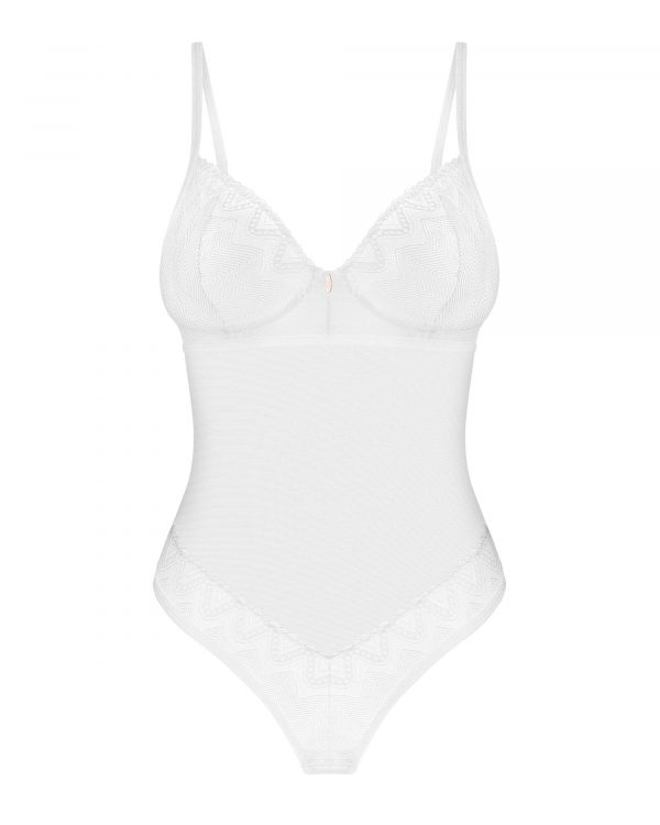Body alissium Un body blanc conçu avec le souci du détail. Ces embellissements géométriques et cette coupe sexy qui exposent de manière séduisante les fesses font une recette pour des moments inoubliables. Surprenez votre moitié et laissez-la vous découvrir à nouveau ! – body blanc- bonnets à armatures- fermeture à l?arrière, sangles réglables- matériau agréable au toucher – un pendentif en or rose- 94 % polyamide, 6 % élasthanne – conçus dans l?UE- ne contient pas de nickel