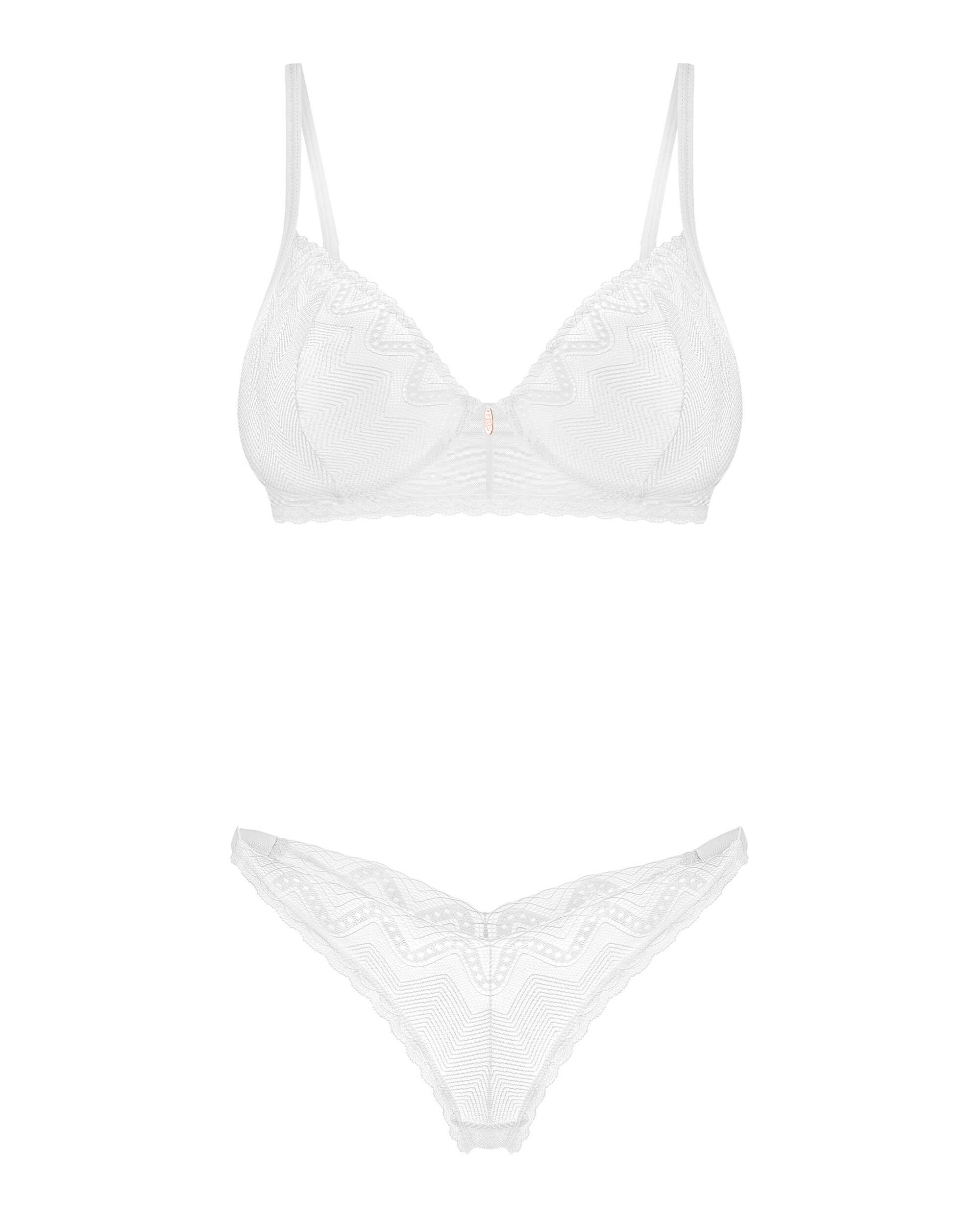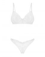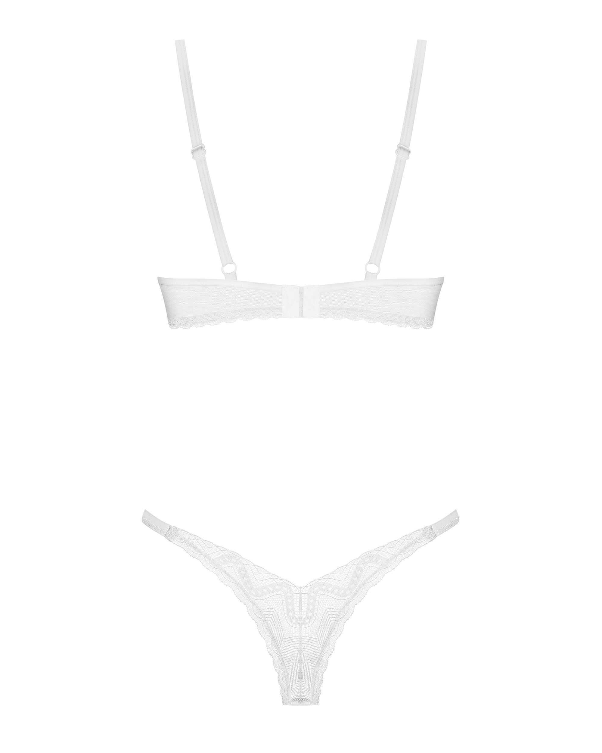 Ensemble 2 pièces AlissiumLe string et le soutien-gorge de couleur blanche attirent l?attention sur leur caractère universel. Cette lingerie est une composition esthétique de dentelle et de matière lisse et transparente. Un vrai classique dans une version très tentante. – un ensemble composé d’un string et d?un soutien-gorge de couleur blanche- bonnets souples avec armature- lannière réglables et fermoir à plusieurs niveaux- dentelle à motif géométriquependentif en or rose90% polyamide, 10% élasthanneconçu dans l?UEil ne contient pas de nickel