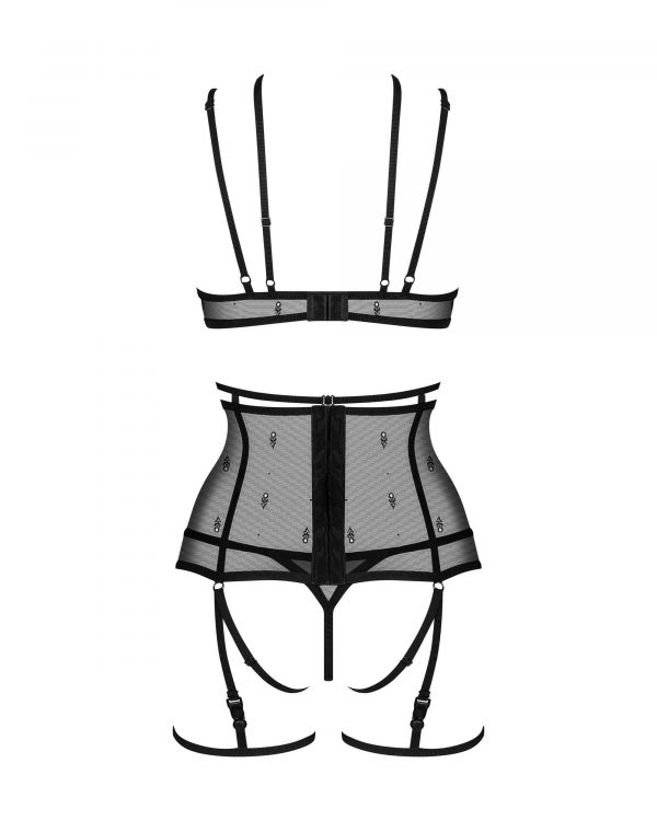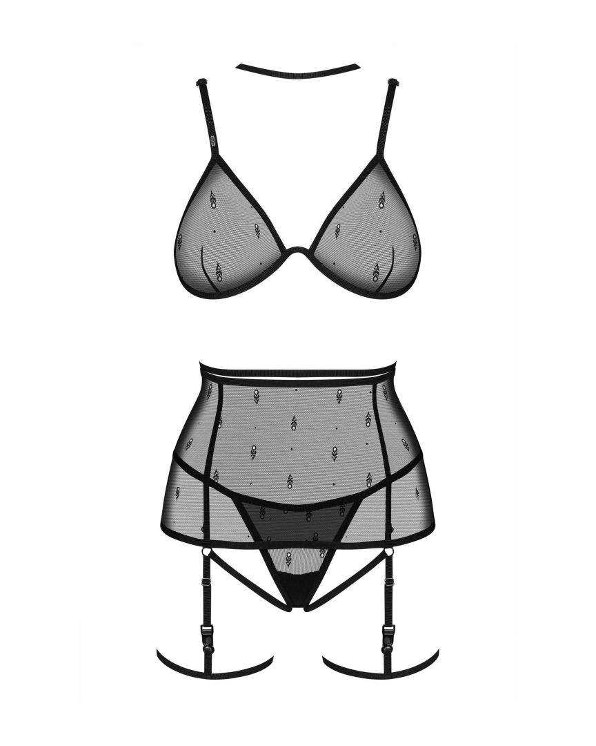Ensemble Anniverse spécial 4 piècesCet ensemble coquet comprend un large porte-jarretelles, jarretières détachables, string et soutien-gorge. La combinaison intrigante de matériaux légers mettra parfaitement en valeur la confiance en soi féminine.- soutien-gorge noir, porte-jarretelles, jarretelles détachables et string – armatures en bonnets souples – les bretelles doubles embrassent le cou pour former un tour de cou – bretelles réglables, jarretelles et ceinture – fermeture de soutien-gorge et porte-jarretelles à plusieurs étages – éléments graphiques sur le tissu- 82 % polyamide, 18 % élasthanne- conçus dans l?UE- sans nickel