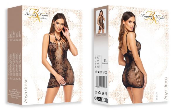 Une mini-robe sexy pour les amateurs de lingerie confortable mais en même temps provocante. La robe à bretelles est confectionnée à partir d’un fil noir doux qui présente un décolleté intéressant. Le motif résille est complété par des applications florales sur le devant et le dos de la robe. Présenté dans un emballage élégant avec la photo présentant le produit. Taille: S/LMatériel: 90% Poliamide, 10% Élasthanne
