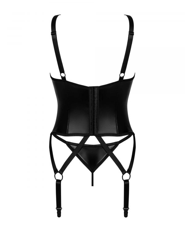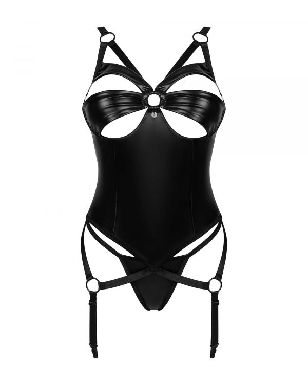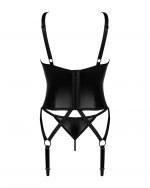 Vous êtes enthousiaste à l’idée d’une soirée romantique à venir ? Vous avez envie de briser les schémas et de vous présenter sous une toute nouvelle forme ? Réchauffez l’atmosphère avec une combinaison incroyablement sensuelle de noir intense et de détails métalliques. Surprenez-vous et préparez-vous à recevoir une avalanche de compliments. Découvrez plus de détails :- corset et string noirs- un ajustement parfait grâce à la fermeture en plusieurs étapes et aux jarretelles et bretelles réglables – pendentif intéressant – un accessoire chic – matière élastique brillante et douce au toucher 100% polyuréthane ; doublure : 95% viscose, 5% élasthanne