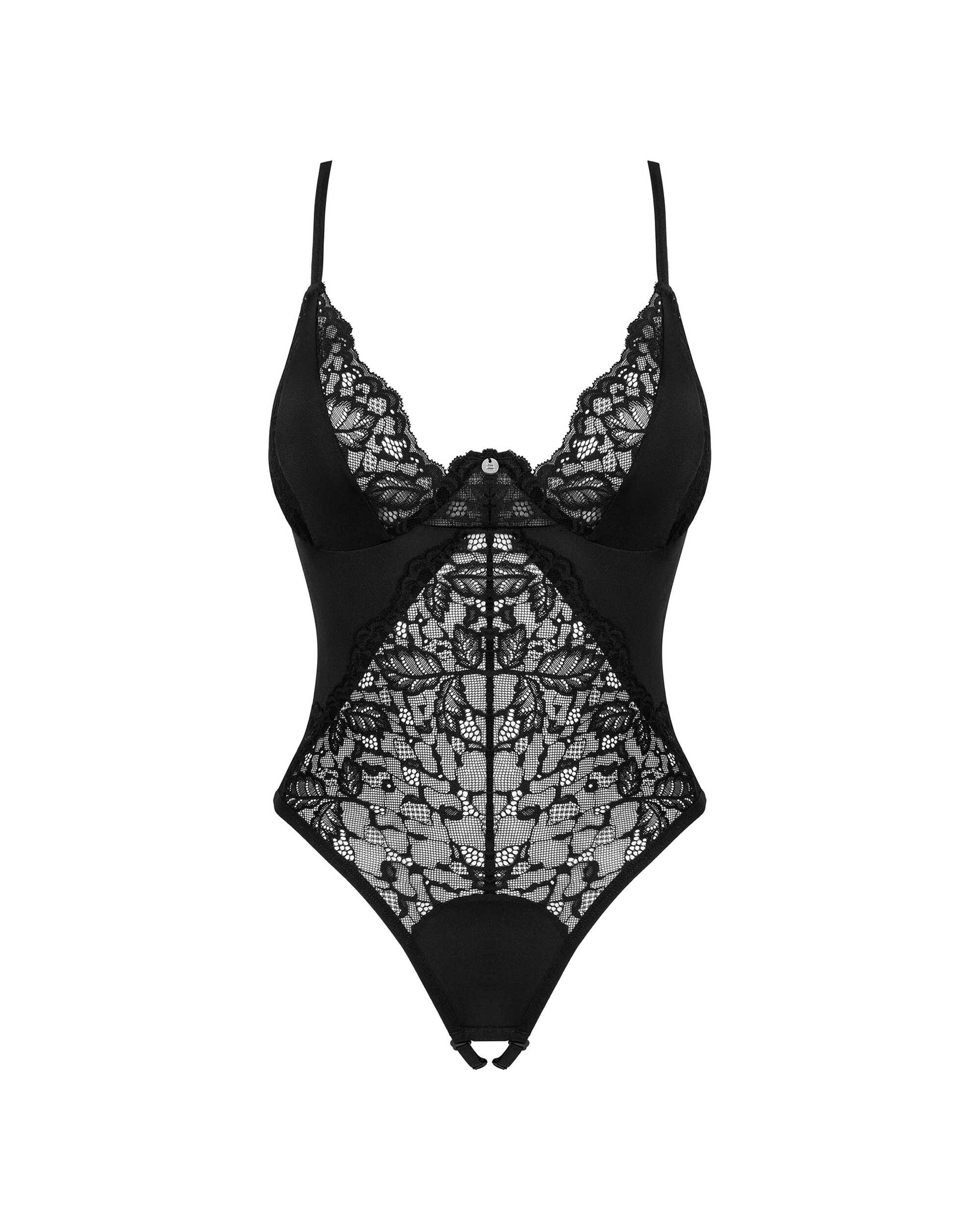 Teddy ouvert Bellastia Préparez-vous pour une soirée unique pleine de tendresse, de proximité et de passion. Le nounours Bellastia vous charmera par son confort et vous incitera à vivre des moments tendres avec une coupe audacieuse et une association chic de tissus. La dentelle florale ajoutera du sex-appeal et accentuera votre féminité. Découvrez le pouvoir de séduction de cette lingerie noire ! Découvrez plus de détails:- Teddy noir- bretelles réglables et amovibles à l’entrejambe ouvert ? design surprenant- dentelle soigneusement réalisée ? ajoute un caractère sensuel- bretelles réglables ? ajustement parfait- bonnets à armatures ? soulignent délicatement la poitrine- pendentif brillant ? un détail de bon goût- tissu élastique ? épouse parfaitement vos courbes (90% polyamide, 10% élasthanne)