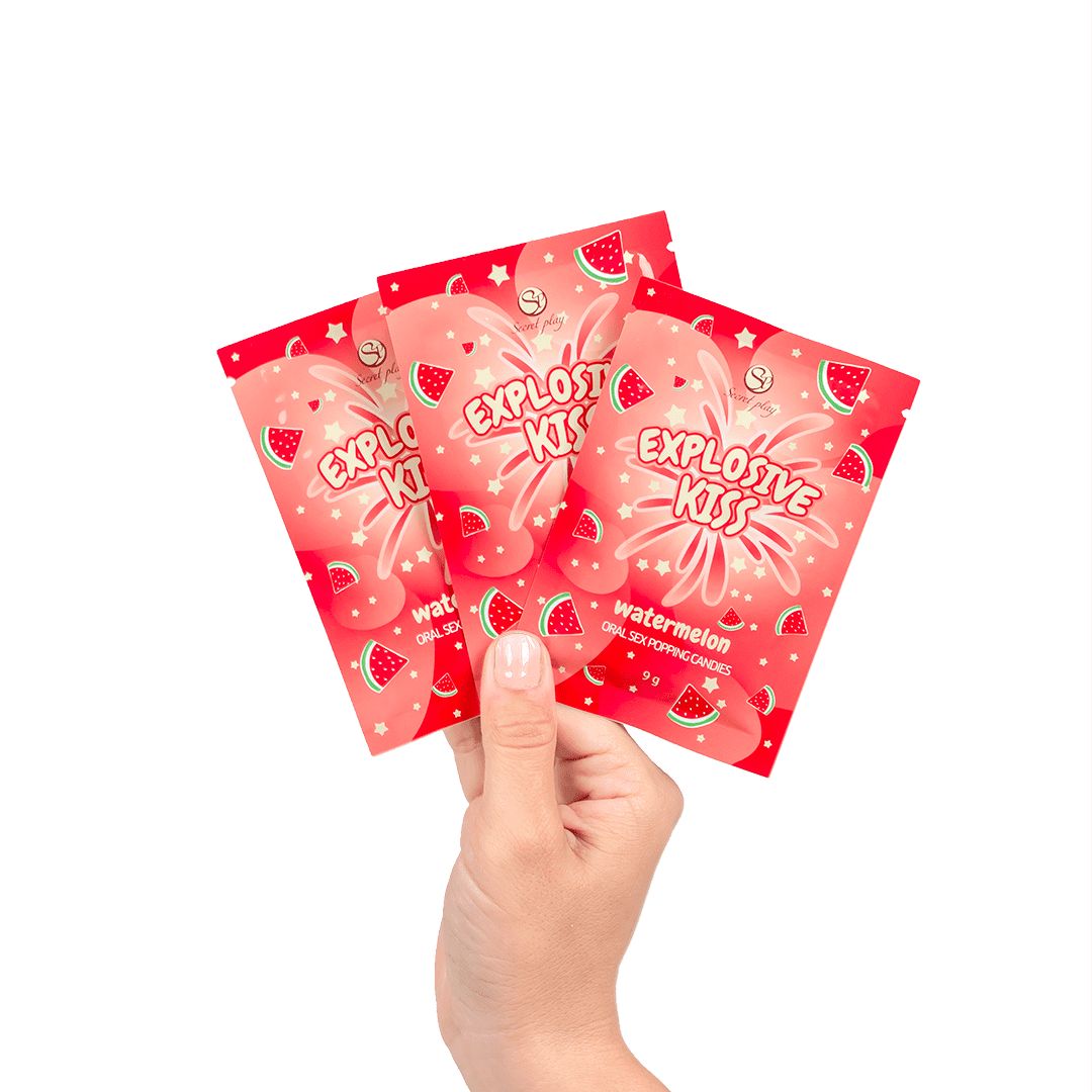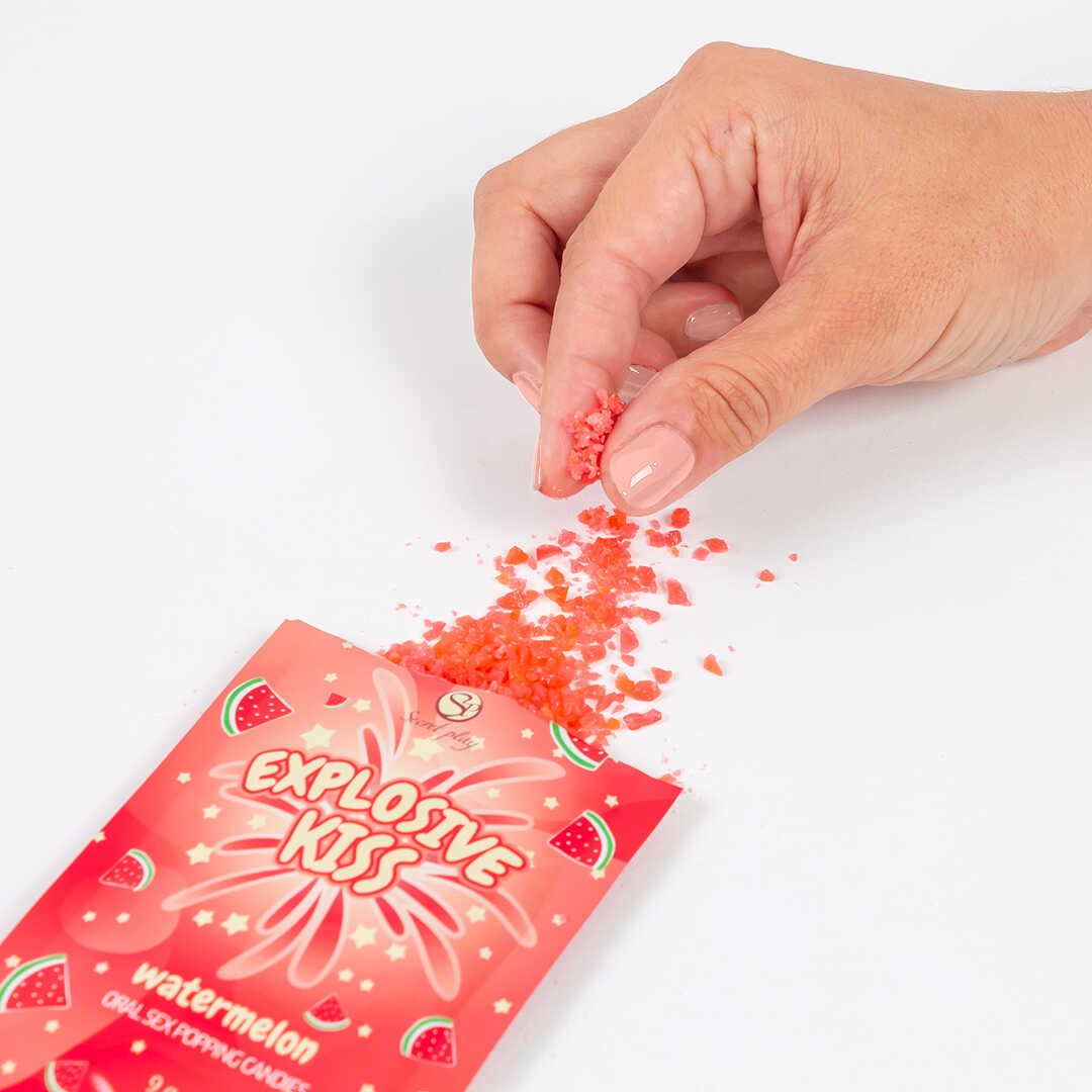 Vous ne savez pas comment innover en matière de sexe oral et vous pensez avoir tout essayé?Ces bonbons pétillants vous feront découvrir qu?il y a encore beaucoup à expérimenter. Transposez la magie dans votre bouche et offrez à votre partenaire et à vous-même une nouvelle sensation qui vous rendra accro: des petits bonbons qui éclatent dans la bouche et provoquent des ‘pops’ imprévus et rigolos. Déposez quelques bonbons pétillants dans la bouche pour commencer à profiter de leur effet séducteur. Ajoutez un élément sensationnel à vos séances de sexe oral et préparez-vous à être séduit pour la vie.Ces sexy cristaux explosifs sont présentés dans un sachet individuel à usage unique et leur effet effervescent fera du sexe oral une expérience explosive.Les Popping Candies peuvent également être utilisés de manière créative lors de vos jeux sensuels: déposez-les sur vos seins ou toute autre zone érogène externe et invitez votre partenaire à profiter de l’effet dans sa bouche ou encore, préparez un bain surprenant pour votre partenaire.Remplissez le tube avec de l’eau et mettez-y un ou plusieurs sachets. Invitez votre partenaire là-dedans et laissez-vous séduire par l’effet pétillant des bonbons dans l’eau. Amusez-vous ensemble.Comment ça fonctionne:Les Popping Candies contiennent des bulles de CO2 microscopiques piégées dans les bonbons. Ces bulles sont libérées lorsqu’elles entrent en contact avec votre salive, et c’est alors que vous ressentez cette sensation d’explosion gratifiante.Préparez-vous à devenir accros car faire jouir votre partenaire ne sera jamais pareil! Emballage: 1 sachet Contenu: 9 gr Saveur: Pastèque 100% comestible