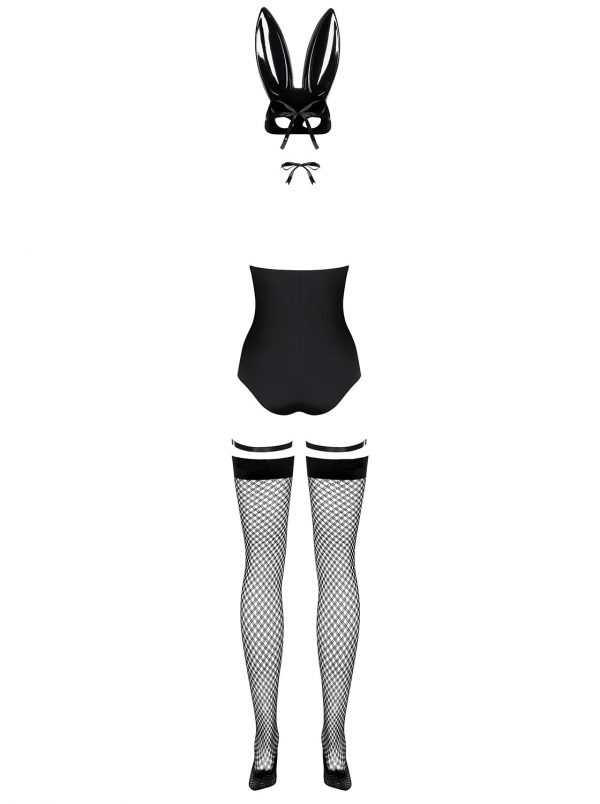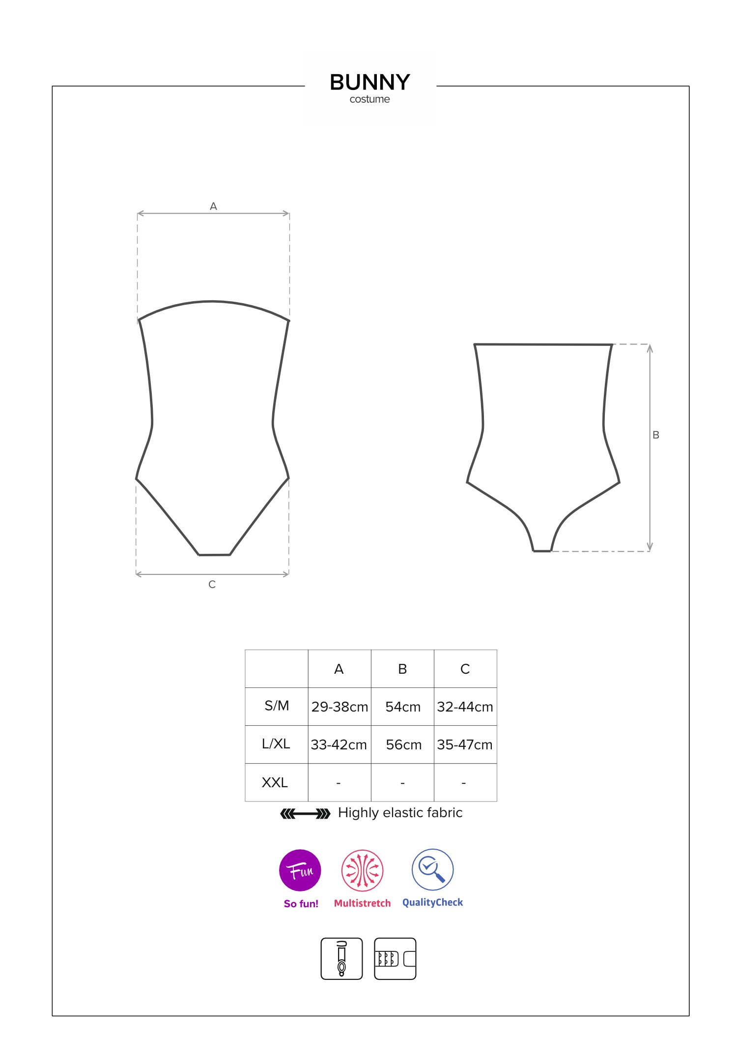 Le diable est dans les détails !Et pour ce costume unique et ludique, ce sont les détails qui font le travail… Les oreilles coquines, les jarretelles torrides et les bas ultra-féminins créent ensemble un joli costume de lapin. Irrésistible ! Vérifiez-le par vous-même…Tous les détails :Un costume de lapin surprenant comprenant : body, masque avec oreilles, tour de cou, jarretelles et bas Body noir parfaitement ajustée ? formes accentuéesMasque avec oreilles ? éblouissant et coquetJarretelles extrêmement sexy amovibles et ajustablesCollier à noeud décoratif ? ajout frivoleBas noirs ultra-fémininsComposition masque : 100% PVCComposition body : 85% polyamide, 15% élasthanneComposition collier : 100% polyesterComposition jarretelles : 40% métal, 35% polyester, 25% caoutchouc