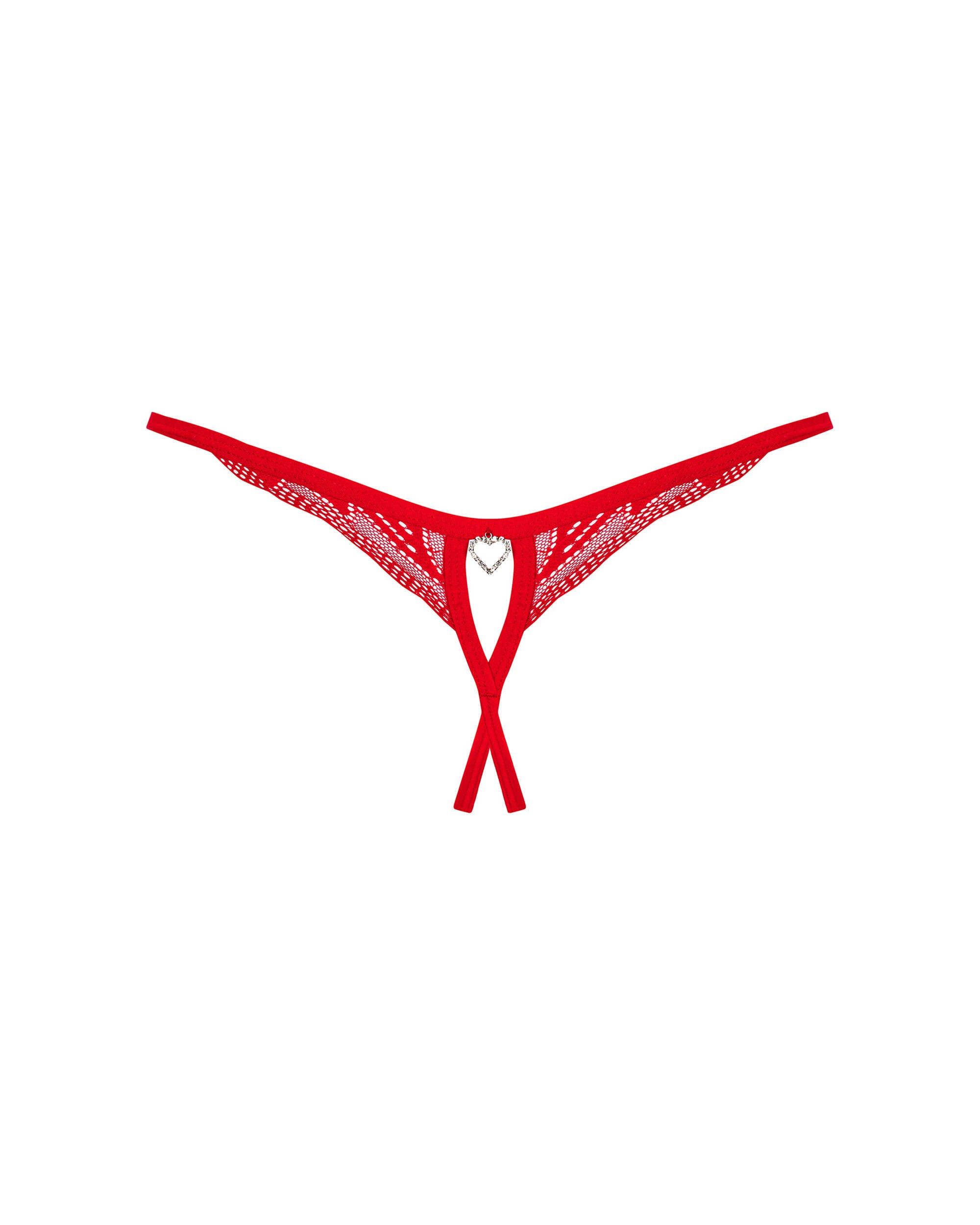 String ouvert ChilisaConcentrez toute votre attention sur vous-même avec ce string séduisant avec un entrejambe ouvert. La couleur rouge rendra impossible pour quiconque de vous enlever les yeux, et la coupe classique rendra votre derriere séduisante. Ajoutez du sex-appeal, éveillez votre imagination et créez des moments merveilleux.Pour en savoir plus :- string rouge sexy- coupe ouverte ? garantit une atmosphère chaude- dentelle délicate ? une finition unique- un pendentif rond et un petit coeur clouté de zircons ? détails intrigants- le confort est assuré par un tissu élastique (90% polyamide, 10% élasthanne)