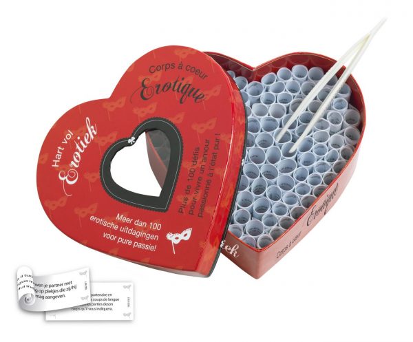 Retirez les sous-vêtements de votre partenaire sans utiliser vos mains? Racontez à votre partenaire un fantasme érotique dont vous avez un peu honte?Que va-t-il se passer ? Un jeu corps à coeur érotique à deux très excitant pour consommer l?autre sans modération. Saisissez à tour de rôle un gage à l?aide de la pincette. Séduction ludique, préliminaires tendres, fantasmes coquins ou défi érotique… Que va-t-il vous arriver ? Vivez ensemble des moments de pure complicité amoureuse et sensuelle !Ce jeu corps à coeur érotique n?a pas son pareil. Il n?y a pas de limite de temps et il n?y a que des gagnants. Ce jeu, plein d?humour, va renforcer l?intimité de votre relation. Certains défis peuvent être réalisés immédiatement, mais la location d?un film érotique ou la préparation d?une surprise captivante seront le prélude de moments de plaisir à passer ensemble un peu plus tard.Bref : un jeu corps à coeur érotique qui vous fera vivre ensemble de grands moments d?intimitéExplications en vidéo du corps à coeur érotique.