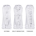 Osez la masturbation en toute transparence ! Le masturbateur DEEP BLOW dispose de 3 manches supplémentaires, qui sont aussi ultra- élastiques et douces pour s?adapter à votre taille et de vous offrir un confort parfait.- DEEP BLOW EXTREM : mettez un peu de piquant dans votre vie intime, avec cette manche dotée de formes pyramidales ;- DEEP BLOW MULTI SENSATION : multipliez les stimulations grâce à cette manche texturée, qui alterne des parties étroites et larges ;- DEEP BLOW TORNADO : vivez un tourbillon d’exquises caresses grâce à cette manche entièrement spiralée.Ces 3 manches sont démontables et interchangeables. Elles s?utilisent avec ou sans boîtier afin de multiplier vos expériences de masturbation. Petit plus très excitant, chaque manche est translucide, vous permettant de ne rien rater du spectacle ! AVANTAGES : Manches réutilisables et interchangeablesMatière ultra doux & élastiqueSurface intérieure texturéeTransparentPression ajustable INFORMATIONS TECHNIQUES : Dimension : 16,4 x 6,7 cm / 6,46 x 2,64 inchesExtrem : 13,9 cm / 5,47 inchesMulti sensation : 14,9 cm / 5,87 inchesTornado : 14,5 cm / 5,71 inches Waterproof IPX 7