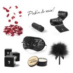 Vous n’allez pas vous ennuyer avec ces dés ! Vous pourrez personnaliser intégralement vos 3 dés en choisissant les lieux, actions et zones du corps que vous collerez sur les 6 faces de chaque dés. Vous disposez de 27 autocollants pour un grand nombre de combinaisons et possibilités…Les dés sont emballés avec les stickers dans une pochette en organza.A vous de jouer !