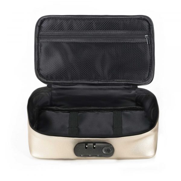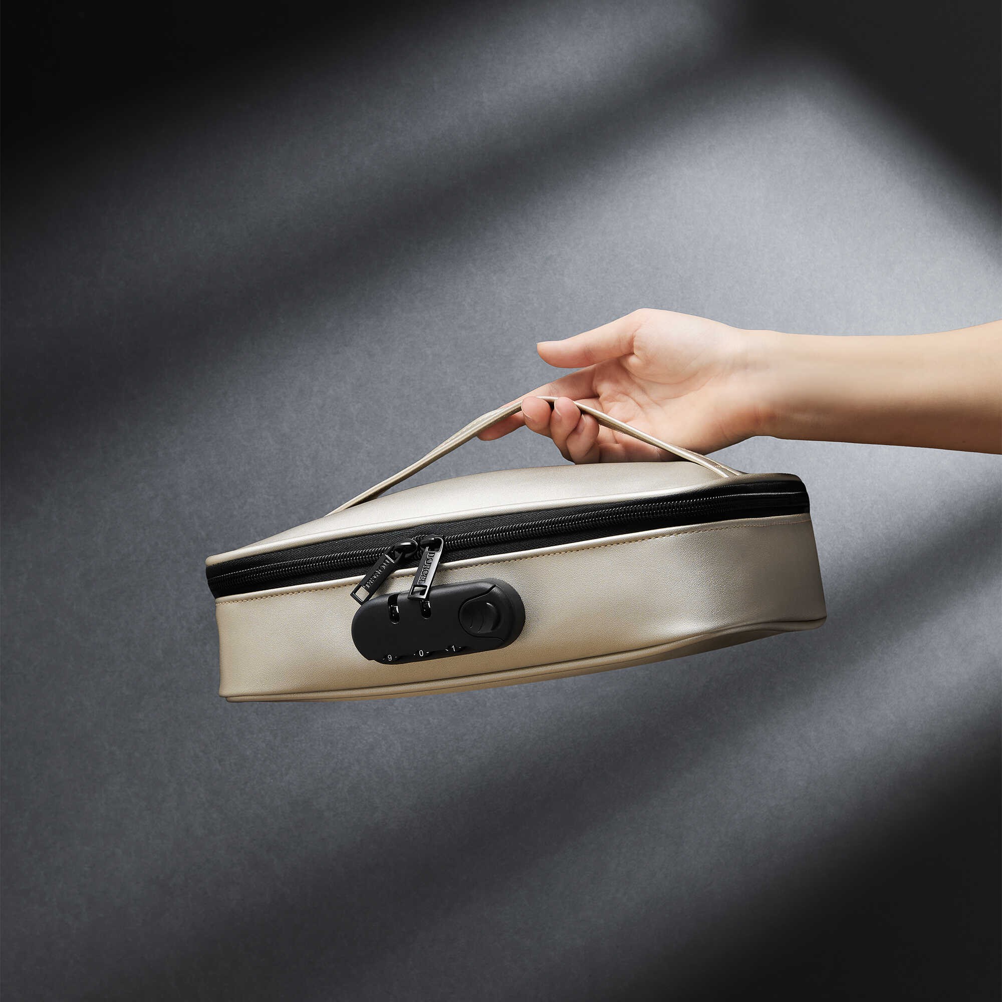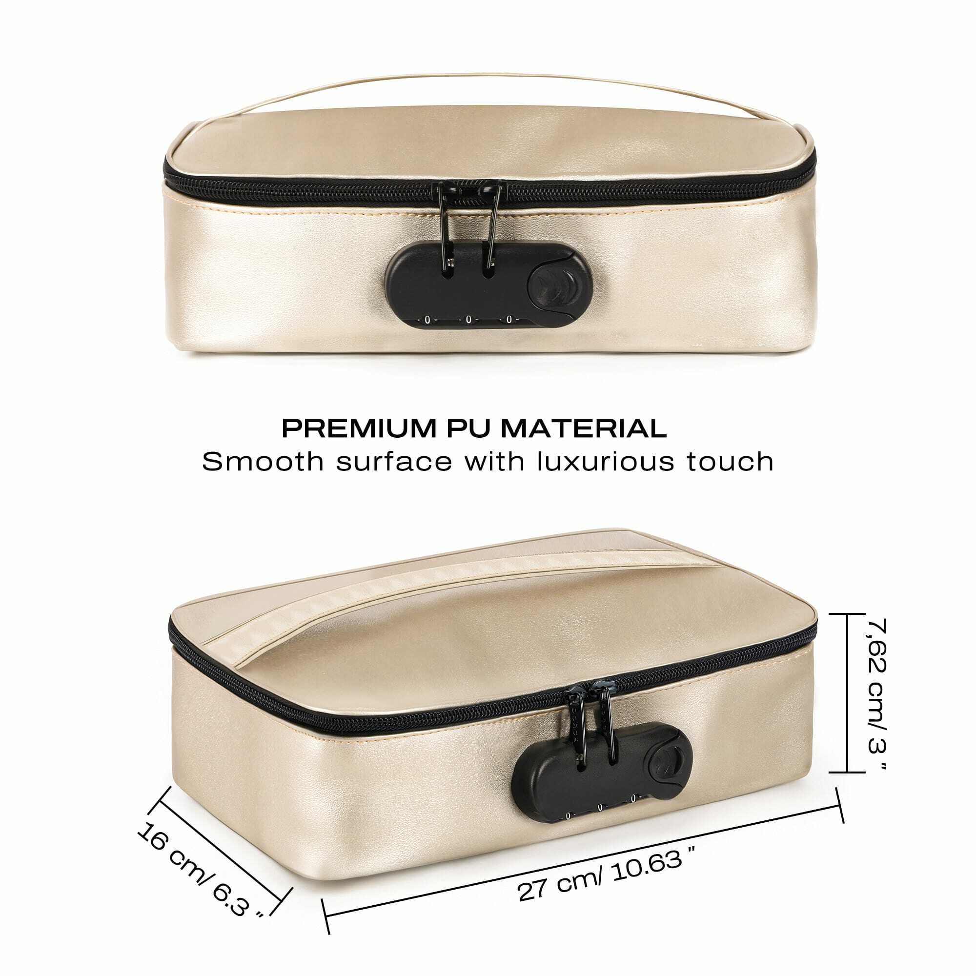 Vous connaissiez la DISCREET BOX pour ranger vos sextoys en toute sécurité ? Et vous cherchez une finition encore plus luxueuse ? Voici deux nouveaux DISCREET BOX absolument irrésistibles : LUXURY GOLD et LUXURY GREEN !Laissez-vous séduire par ces couleurs chatoyantes grâce au revêtement qualitatif, à l’aspect lisse et au rendu luxueux.Comme pour la DISCREET BOX noir, bénéficiez:- d’un cadenas à code intégré à la box, – d’une grande capacité de rangement- de sangles élastiquesDécouvrez aussi la nouvelle fermeture zippée de la pochette intérieure en filet, permettant de mieux organiser et maintenir vos toys.LUXURY GOLD, LUXURY GREEN, étincelante et envoûtante…Préservez tous vos secrets et comblez toutes vos envies !AVANTAGES?Design chic et stylé?Serrure à combinaison intégrée ?Grande capacité de rangement ?Fermeture éclair à double zip?Pochette intérieure à fermeture éclair?Sangle élastique INFORMATIONS TECHNIQUES?Dimension : 27 x 16 x 7,62 cm / 10,63 x 6,3 x 3 pouces?Polyuréthane + coton