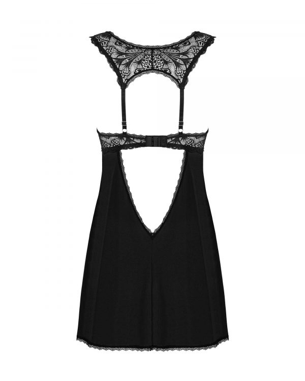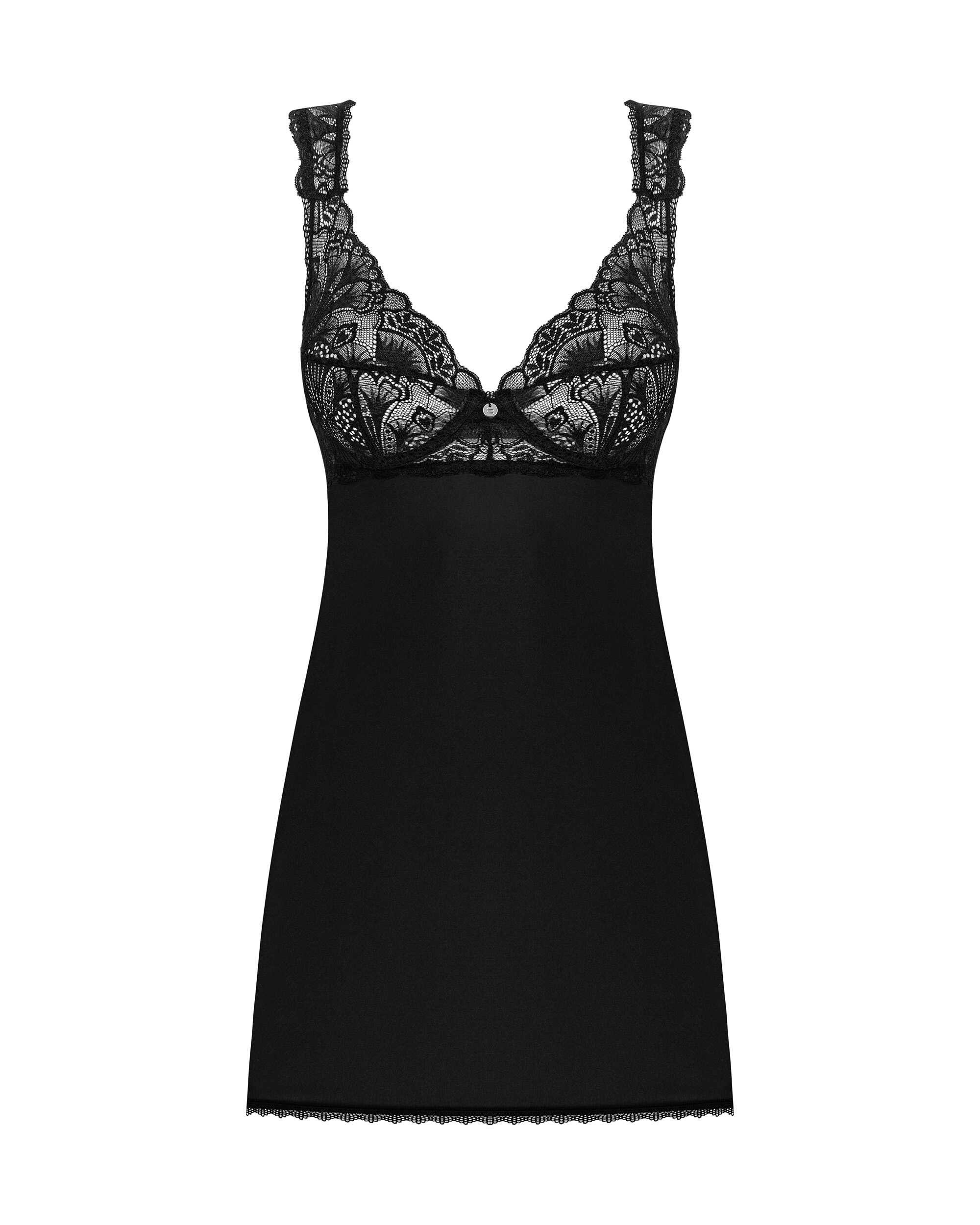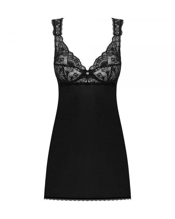 Nuisette Donna Dream Envie de faire monter la température et de vous sentir belle et sensuelle ? La nuisette Donna Dream vous y aidera certainement. Une coupe sophistiquée qui expose le dos et le buste ainsi que la bordure en dentelle vous empêcheront de vous quitter des yeux. Compliments garantis ! Découvrez plus de détails :- nuisette sexy avec string- couleur noire qui ne se démodera jamais- met parfaitement en valeur la poitrine grâce au serrage multi-étagé et aux armatures- bretelles réglables – assurent un ajustement parfait- bordure en dentelle – design épicé- pendentif en argent – un détail intéressant- tissu agréable au toucher – nous nous soucions de votre confort (85% polyamide, 15% élasthanne)