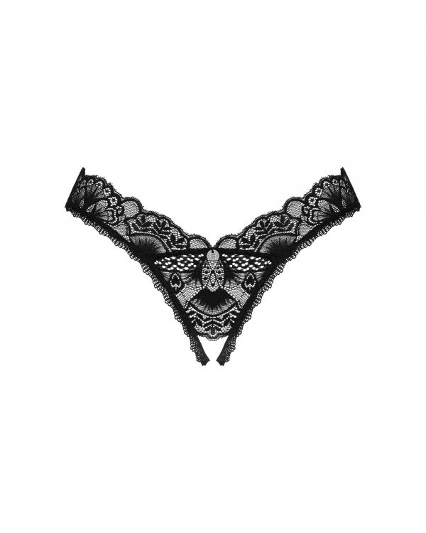 String ouvert Donna Dream Le string Donna Dream est une invitation surprenante à un rendez-vous amoureux. Ne vous fiez pas à son élégance innocente – elle cache un secret qui enflammera sûrement l’atmosphère. De plus, la coupe unique combinée à la dentelle sexy rendra difficile de quitter les yeux de votre derrière? Découvrez plus de détails :- string noir ouvert- dentelle sensuelle – fonctionne toujours- un pendentif qui attire l’attention- tissu élastique – vous apportera du confort (90% polyamide, 10% élasthanne)