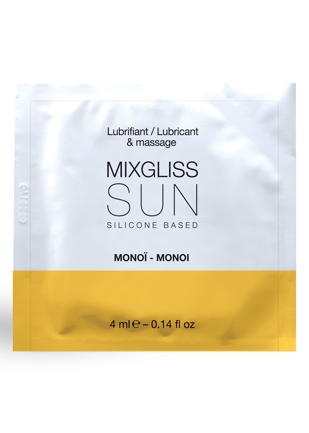 Dosette de lubrifiant au silicone monoï de la marque mixgliss de 4ml, usage unique * Ce produit est un échantillon marketing qui ne peut être revendu au client final.