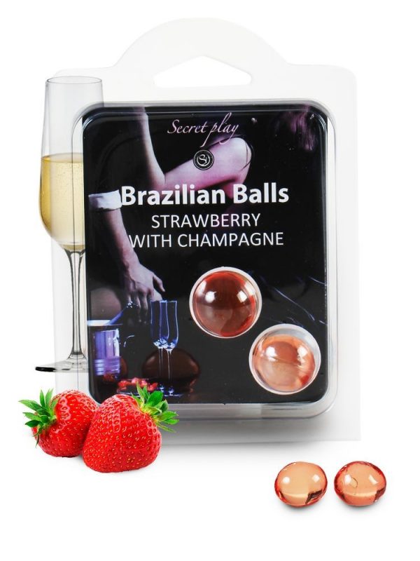 Voici les fameuses Brazilian Balls. Un concept original de boules parfumées fraise champagne qui permettra des jeux coquins. Ces boules fraise champagne se frottent sur la peau et au contact de la chaleur elles libéreront une huile de massage soyeuse parfumée à la douce saveur de fraise champagne. Des caresses à n’en plus finir pour des massages très érotiques et un odorat comblé. Composition : Hellanthus annus seed oil, tocopheryl acétate, aroma, benzyle alcool, cinnamyl alcool, linalool