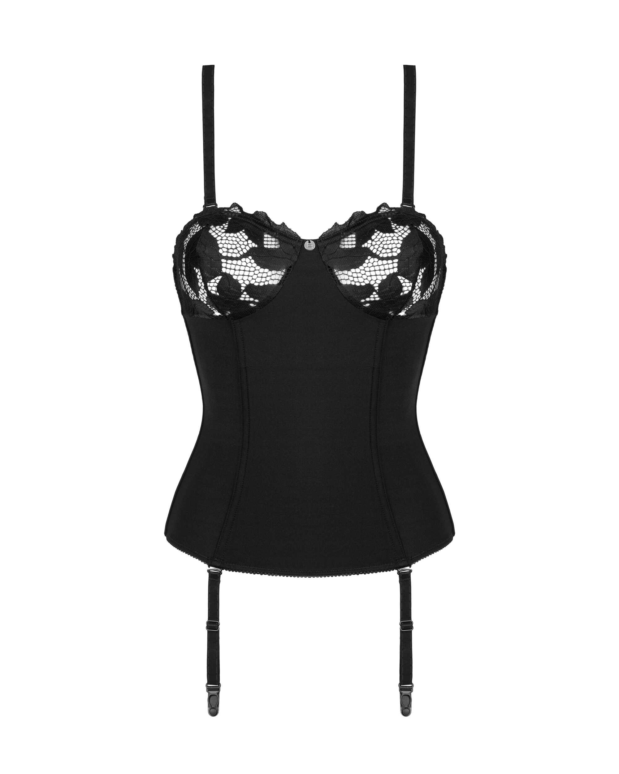 Sensuel, le corset Editya noir est une proposition féminine et sex-appealante. Les bonnets souples et légèrement translucides soulignent parfaitement la poitrine, et les armatures verticales dessinent joliment la forme du corps. La fermeture confortable sur toute la longueur du dos permet un ajustement parfait et ajoute du style à l’ensemble.Découvrez plus de détails :- corset noir Editya- armatures verticales – silhouette sensuellement soulignée- bretelles jarretelles avec possibilité de réglage – confort et commodité- fermeture sur toute la longueur du dos – ajustable au corps- doublure en silicone à l’arrière – le corset ne glisse pas- les culottes ne sont pas incluses- matière agréable au toucher (85% polyamide, 15% élasthanne)