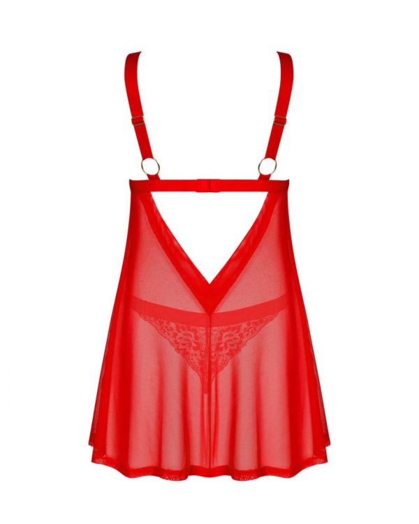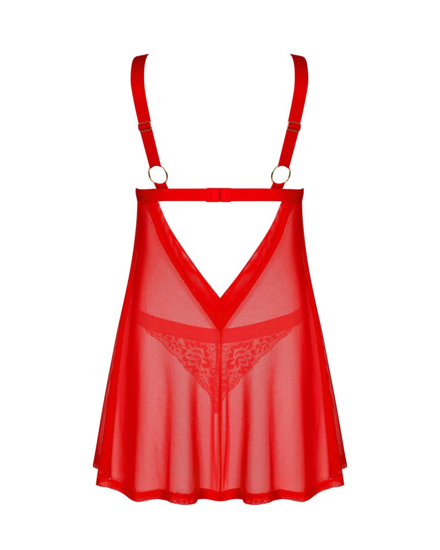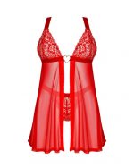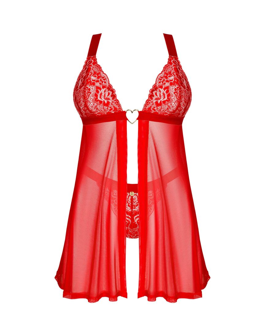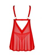 Babydoll et string ElianesQue diriez-vous d?un ensemble unique qui mettra doucement en valeur votre féminité? String en dentelle classique et babydoll dans une couleur rouge séduisante vous fera vous sentir belle. Le tissu aéré enveloppera votre corps de la manière la plus exquise, et les inserts en dentelle accrocheurs vous feront le centre de l?attention.Pour en savoir plus :- nuisette et string rouge- fixation en plusieurs étapes et sangles réglables ? assurer un ajustement parfait- coupe alléchante ? un design unique- connecteur en forme de c?ur doré ? suscite la curiosité- une excellente combinaison de tissus souples ? assure confort et belle apparence(babydoll : 94% polyamide, 6% élasthanne; string : 90% polyamide, 10% élasthanne)