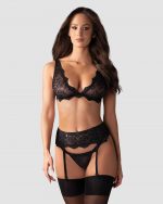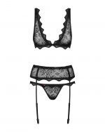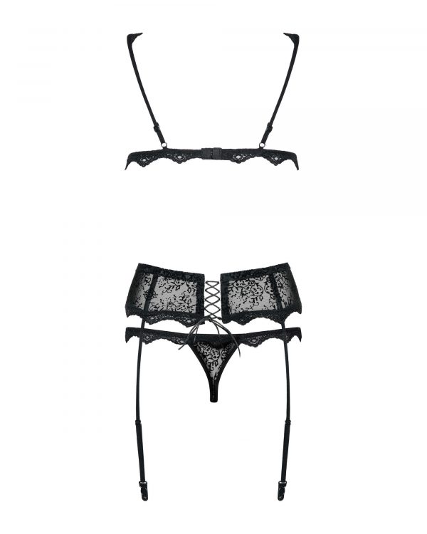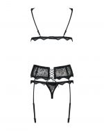Ensemble sexy et élégant, parfait pour une soirée pimentée à deux ! Il est composé de 3 pièces de lingerie : un séduisant soutien-gorge, un porte-jarretelles chic et string. Le soutien-gorge est confortable, doux avec des bretelles réglables. Il se ferme par trois crochets pour optimiser un confort parfait ! Maille transparente décorée de velours et de motifs en dentelle. Le porte-jarretelles est formé d’une large bande de maille noire piquée de motif en velours . String assorti et décoré de velours est inclus.Composition : 90% de Polyamide, 10% d’Élasthanne