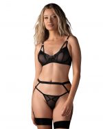 Soutien-gorge Euridia Une sophistication élégante qui célèbre l?individualité. La quintessence d?une liberté d?expression authentique et audacieuse. Impeccable, polyvalente et chic. Créez un look unique pour vous.Un soutien-gorge moderne à armatures avec bonnets de contour en tissus souples de qualité supérieure. Ajustement et fermeture à plusieurs niveaux avec crochets assurent un ajustement parfait. Mélanger librement avec d?autres produits de la même collection. ? Soutien-gorge Euridia noir? bonnets à armatures? accents de rose dorée? tissu souple? souci du détail? conçu dans l?UE? 94 % polyamide, 6 % élasthanne Euridia porte-jarretelles Une merveille minimaliste, un hommage à l?élégance épurée et à l?individualité. Plongez dans un univers de luxe libérateur qui transcende les tendances. Épouse vos courbes sans effort, promettant confort et style. Rehaussez votre répertoire de lingerie avec cet ajout subtil mais séduisant. Un porte-jarretelles noir moderne, minimaliste, fait de tissus premium flexibles. La fermeture à crochet à plusieurs niveaux et la longueur réglable des porte-jarretelles assurent un ajustement parfait. Un design intemporel avec une finition luxueuse. ? bretelles porte-jarretelles? fermeture réglable à l?arrière? Rose dorée? tissu souple? conçu dans l?UE? 94 % polyamide, 6 % élasthanne Euridia tanga Une pièce essentielle, célébrant la féminité sauvage. Design contemporain, équilibré et design épuré. Révélez votre essence intérieure avec audace et authenticité. Minimaliste et moderne, le string dispose d?une taille réglable, assurant un ajustement parfait adapté à votre silhouette unique. Des accessoires métalliques contrastés en rose dorée se détachent sur le noir élégant. ? string noir? ajustement de la taille? détails en or rose? tissus souples de la plus haute qualité? conçu dans l?UE? 94 % polyamide, 6 % élasthanne