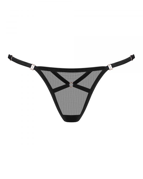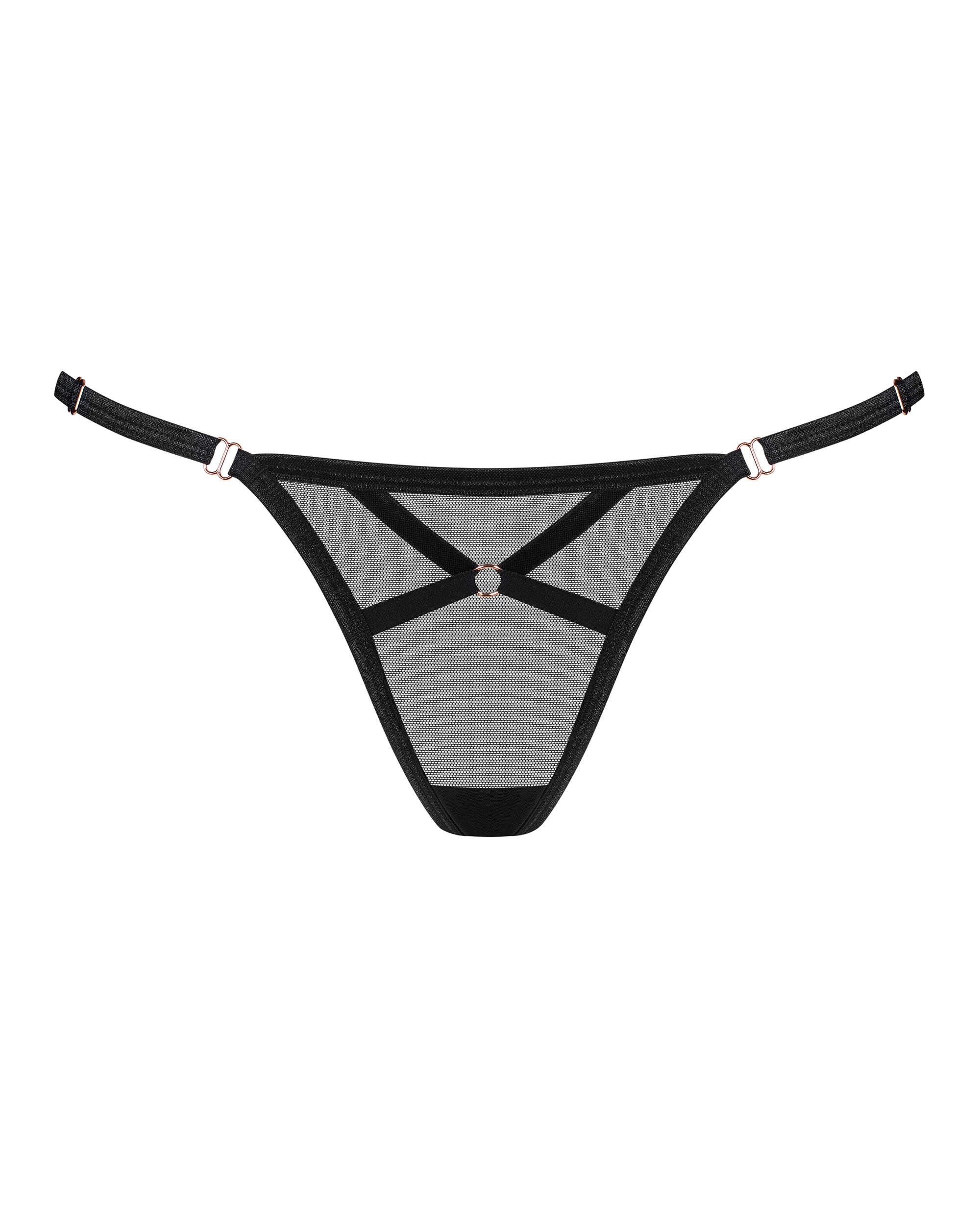 Euridia tanga Une pièce essentielle, célébrant la féminité sauvage. Design contemporain, équilibré et design épuré. Révélez votre essence intérieure avec audace et authenticité. Minimaliste et moderne, le string dispose d?une taille réglable, assurant un ajustement parfait adapté à votre silhouette unique. Des accessoires métalliques contrastés en rose dorée se détachent sur le noir élégant. ? string noir? ajustement de la taille? détails en or rose? tissus souples de la plus haute qualité? conçu dans l?UE? 94 % polyamide, 6 % élasthann
