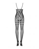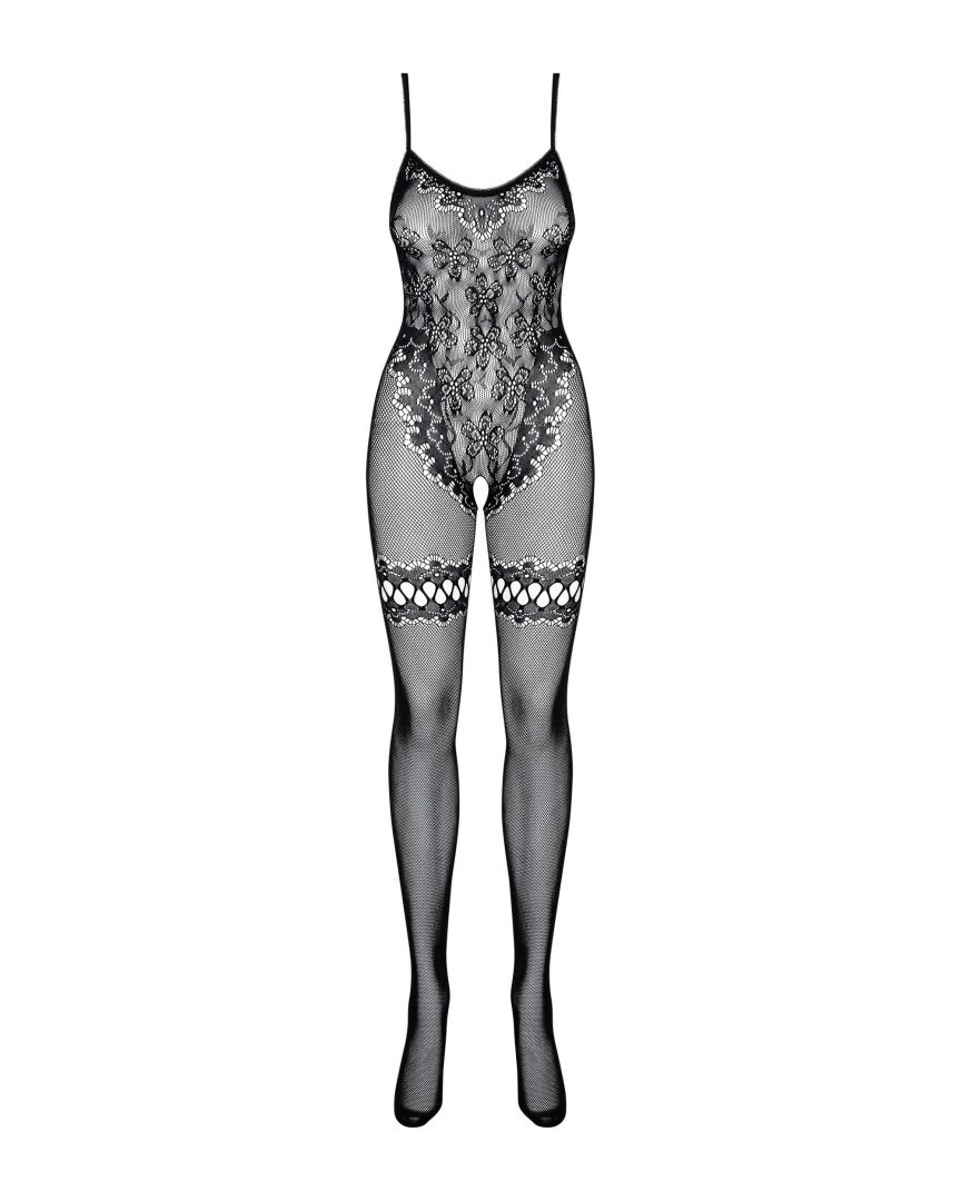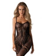 Combinaison ultra féminine ‡ motifs floraux. Séduisante gr‚ce ‡ ses dessins floraux subtils. Résille décorée de lignes verticales ayant un effet amincissant. Ouverture sur l’entrejambe. Decorations sur les jambes, imitation « bas »∑ Composition : 90% nylon, 10% …lasthannee
