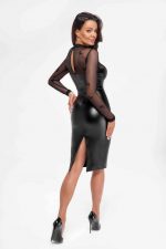 F311 Eros mini robe dos nu en maille floquée et wetlook