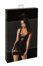 Description du produitDentelle élastiqueWetlook élastiqueMini robe Cette mini robe élégante et raffinée associe l’attrait de la forme du tissu Stretchy Power Wetlook à un détail de conception frappant qui ajoute une touche de sensualité. Parfaite pour celles qui souhaitent se faire remarquer lors de soirées ou de moments intimes, cette robe est synonyme d’assurance et d’allure.Matière: Fabriquée entièrement en tissu extensible Power Wetlook, la robe épouse la silhouette body, accentuant curves tout en offrant une coupe souple et confortable.Conception: La robe présente un design épuré qui permet de l’enfiler et de l’enlever facilement. L’encolure dégagée et la silhouette simple mettent en valeur les formes naturelles de body.Détail unique: Une jarretière en dentelle souple et élastique entoure la cuisse, ajoutant une touche inattendue et séduisante au look. Ce détail en dentelle ressort sous la robe, créant un contraste visuel séduisant.Coupe: La robe est taillée pour s’ajuster au plus près du body, mettant en valeur la taille et les hanches tout en offrant une élasticité confortable pour faciliter les mouvements.Cette robe est idéale pour celles qui apprécient les modèles élégants et minimalistes avec une touche d’audace. Que ce soit pour une soirée ou une occasion spéciale, cette pièce ne manquera pas de faire tourner les têtes et de laisser une impression durable. Matière :76% poliester 24 % elasthane enduit de polimère ; dentelle : 85 % poliamide 15 % elasthane