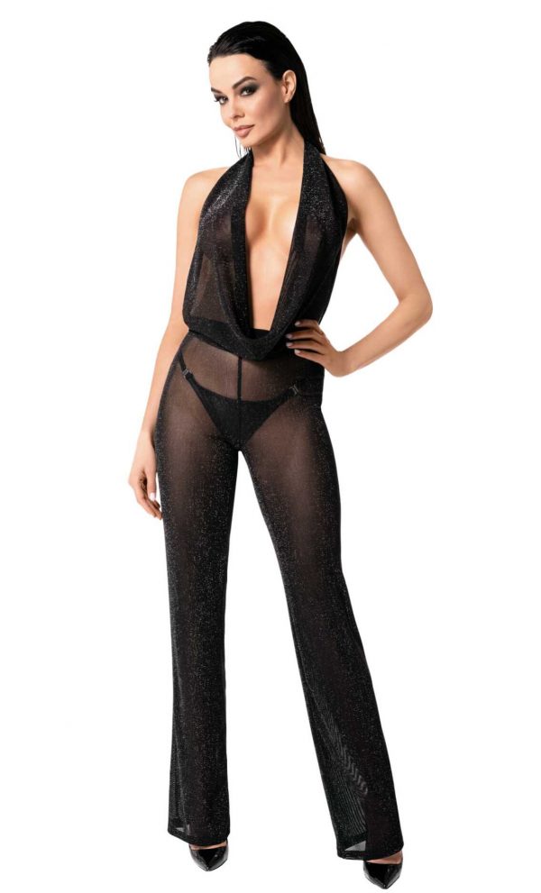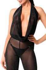 Description du produitPowernet élastiqueDos nuTransparent Cette combinaison accrocheuse est conçue pour celles qui aiment se démarquer dans la foule. Fabriquée dans un tissu transparent et étincelant, elle est parfaite pour faire une déclaration audacieuse lors de fêtes ou d’autres événements audacieux.Matière: L’ensemble de la combinaison est fabriqué à partir d’une maille légère et transparente, subtilement pailletée, qui lui confère un aspect brillant et accrocheur. Le tissu est confortablement extensible, ce qui facilite les mouvements.Design: Dotée d’un décolleté plongeant, la combinaison ajoute une touche sexy et audacieuse à votre look. Le pantalon à jambes larges s’étire sans effort à partir de la taille, créant un équilibre entre le haut révélateur et le bas élégant. Le dos ouvert est fermé par un simple lien, ce qui renforce l’attrait sensuel de l’ensemble.Coupe: La combinaison est conçue pour épouser la forme de body tout en étant suffisamment extensible pour être confortable. Le haut ajusté met en valeur le curves, tandis que le pantalon fluide ajoute une touche de sophistication.Parfaite pour les nuits où vous voulez vous sentir audacieuse et glamour, cette combinaison allie la sensualité à un soupçon d’éclat, ce qui la rend idéale pour les fêtes, les soirées en boîte ou les événements spéciaux où vous voulez que tous les regards se tournent vers vous.