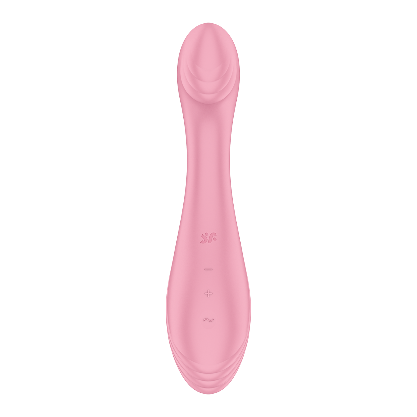 « Satisfyer G-Force »Le Satisfyer G-Force est un puissant expert en matière de stimulation du point G. Ce vibromasseur vous chouchoute avec ses vibrations puissantes, sa pointe aplatie et ses excitantes rainures. Garanti 15 ansStimulation sensuelle du point GMoteur puissantSilicone sans danger pour le corpsÉtanche (IPX7)50 combinaisons de vibrationsFacile à nettoyerBatterie au lithium-ionCâble de chargement magnétique USB inclus Satisfyer G-Force : puissante stimulation du point GLe vibromasseur point G en silicone respectueux de la peau est le jouet idéal pour toutes celles qui ont peu ou pas d?expérience en matière de stimulation du point G. Mais les expertes du point G apprécieront également ce vibromasseur de forme ergonomique. Le G-Force est livré avec 10 programmes de vibrations variés et 5 intensités différentes, afin que vous trouviez la bonne combinaison de vibrations pour chaque niveau de plaisir. Sa surface lisse permet une insertion aisée, que vous pouvez renforcer avec un peu de lubrifiant à base d?eau. Sa forme légèrement incurvée vous permet d?atteindre facilement votre point G, situé à environ 5 cm de l?entrée vaginale. Sa pointe aplatie vous offre une large stimulation de votre zone de plaisir à laquelle s?ajoutent des rainures délicates. Un plus : cette pointe aplatie est également idéale pour la stimulation clitoridienne.Vibromasseur puissant pour votre point G : Satisfyer G-ForceL?eau ne pose également aucun problème à ce vibromasseur. L?intensité de la stimulation du point G peut être augmentée sous la douche ou dans la baignoire. Sa finition étanche (IPX7) facilite également le nettoyage de votre jouet : un peu de Toy Cleaner ou de l?eau tiède avec un savon doux préparera votre Satisfyer G-Force pour sa prochaine utilisation. En parlant de sa prochaine mission : le vibromasseur retrouvera sa pleine puissance grâce au câble de chargement USB inclus.