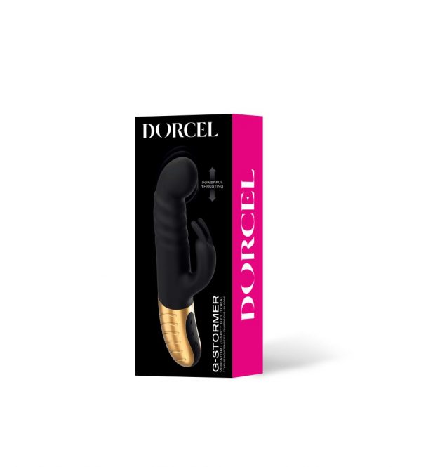 Ce produit est tre?s spe?cifique gra?ce a? son moteur line?aire car il vous permet d?expe?rimenter des mouvements de va-et- vient a? 7 vitesses.L?extre?mite? recourbe?e vous fera monter rapidement au 7e?me ciel gra?ce a? sa stimulation point-G! Son stimulateur clitoridien posse?de 10 modes de vibration. Son manche recourbe? vers l?inte?rieur vous offre une bonne prise en main. G-STORMER®, plus qu?un rabbit… BENEFICES :Design ergonomique : manche recourbe? pour une bonne prise en main Design point G :l?extre?mite? recourbe?e Silicone doux sans phtalate 10 modes de vibration 7 intensite?s de mouvement va-et-vient Dimensions : 23,5 x 3,9 cm Autonomie : 1h – Temps de charge: 2h PLUS PRODUIT Pochon de rangement fourni USB rechargeable (ca?ble USB fourni) EAN : 3700436072110 Packaging : boi?te en carton Poids:net2,61Kg/brut:3,70Kg