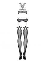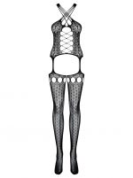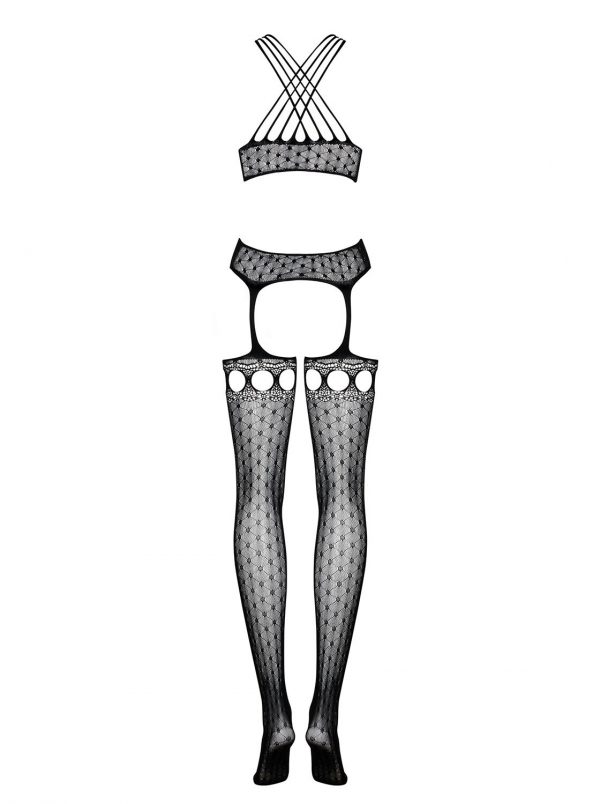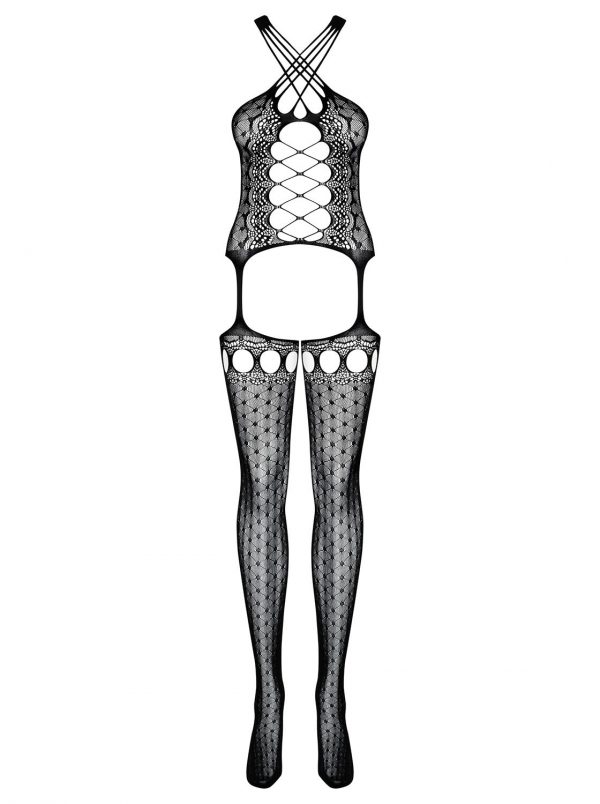 Un look unique pour ce Bodystocking noir de la marque de lingerie sexy Obsessive. Multiples bretelles qui se croisent dans le dos et sur le décolleté, effet laçage sur l’avant, jolis motifs géométrique et bas ajourés, voici un bodystocking sexy qui a un style de guepiere bas jarretelles sur l’avant et ensemble sexy 3 pieces sur l’arriere. Disponible en grande et parfaitement extensible, ce bodystocking Obsessive est composé de 90% nylon 10% elasthane.
