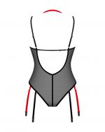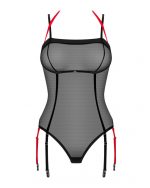 Sentez-vous séduisante et féminine comme jamais auparavant ! Ce body vous apportera le confort que vous méritez. Votre beauté naturelle sera mise en valeur par la coupe minimaliste. Le tissu transparent et le dos nu porté autour du cou mettent subtilement en valeur la poitrine. Soyez sauvage avec du style !Plus de détails :- body noir- coupe qui met en valeur les atouts féminins- ajustement parfait grâce aux bretelles réglables- sangle confortable portée autour du cou- pendentif brillant – donne du style- jarretelles en noir et rouge – à détacher quand vous le souhaitez- tissu délicat au toucher avec des éléments en velours – garantie de confort 94 % polyamide, 6 % élasthanne