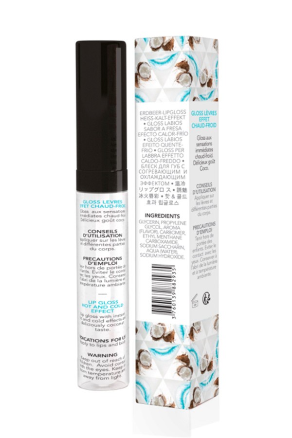 Vous allez faire connaître des sensations inédites à votre partenaire en utilisant ce gloss parfumé à la noix de coco. Avec son effet chaud-froid instantané, le plaisir n’en sera que largement décuplé… Du frisson à l?étreinte !Du simple souffle au creux de la nuque, à la respiration saccadée, accompagnez chaque baiser d?une marque fruitée à l’effet chaud-froid pour des sensations immédiates. A appliquer sur les lèvres et sur les différentes parties du corps.Succombez au délicieux goût de la noix de coco, incolore et non gras, sans arrière-goût amer, sans sucre.Sans parabène, sans phenoxyethanol Disponible en flacon transparent de 7,4 mlComposition : GLYCERIN, PROPYLENE GLYCOL, AROMA (FLAVOR), CARBOMER, ETHYL MENTHANE CARBOXAMIDE, SODIUM SACCHARIN, AQUA (WATER), SODIUM HYDROXIDE Taille du produit : 7.4 ml – 0.26 fl.oz