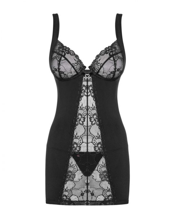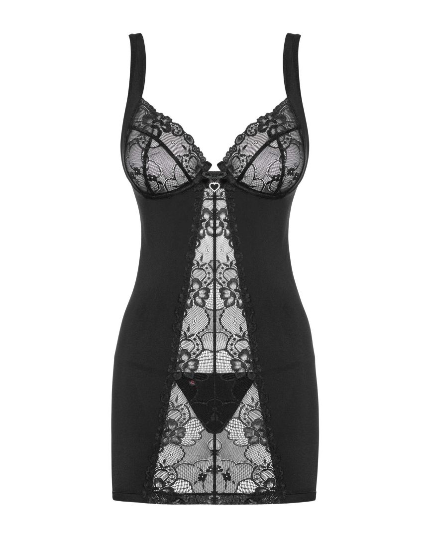 Souhaitez-vous vivre un pur moment de plaisir ? Découvrez la nuisette Heartina dans une version noire sexy et glamour ! Sa dentelle féminine et la finesse de ses détails vous donneront un look superbe. Si vous vous demandez comment surprendre votre partenaire, nous avons ce qu?il vous faut ! Elle s’adapte à votre corps grâce aux différentes solutions imaginées par la lingerie Obsessive.Composition : 85% polyamide, 15% élasthanne