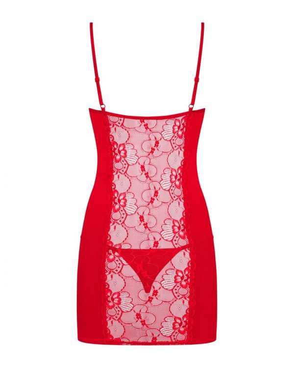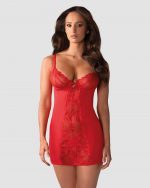 Un rouge intense et un décolleté profond pour cette séduisante nuisette sexy idéale pour la St Valentin. Des bonnets de toute beauté en dentelle et des armatures pour le confort accompagnées d’un joli coeur en strass entre les seins. Dentelle avant et arrière pour la transparence et les côtés dans un tissu lisse et doux. Les bretelles sont réglables et le string assorti est fourni. La composition est de 85% Polyamide, 15% ElasthanneDécouvrir toute la collection de lingerie sexy Heartina Obsessive