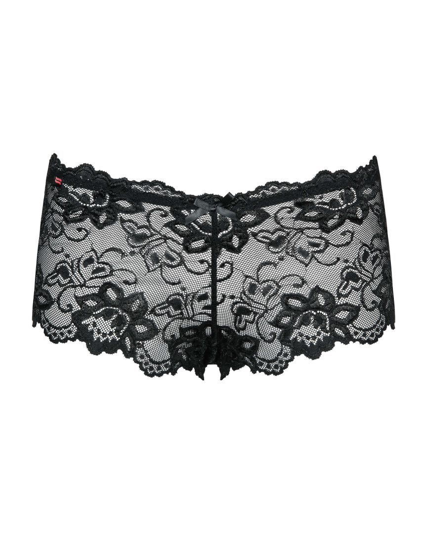 Tentation et charme en un shorty noir délicat décoré de motif floral avec un petit noeud sur l’avant. Fait de matière haute qualité élastique et s’adaptant au corps. Composition : 90% Polyamide, 10 % Élasthanne