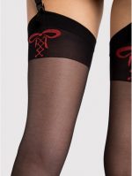 Sensuels bas jarretières avec un petit dessin en forme de coeur rouge derrière chaque cuisse. Parfaite finition mate, Renforcement invisible et élégant au niveau des orteils.Composition : 86% Polyamide, 14% Élasthanne