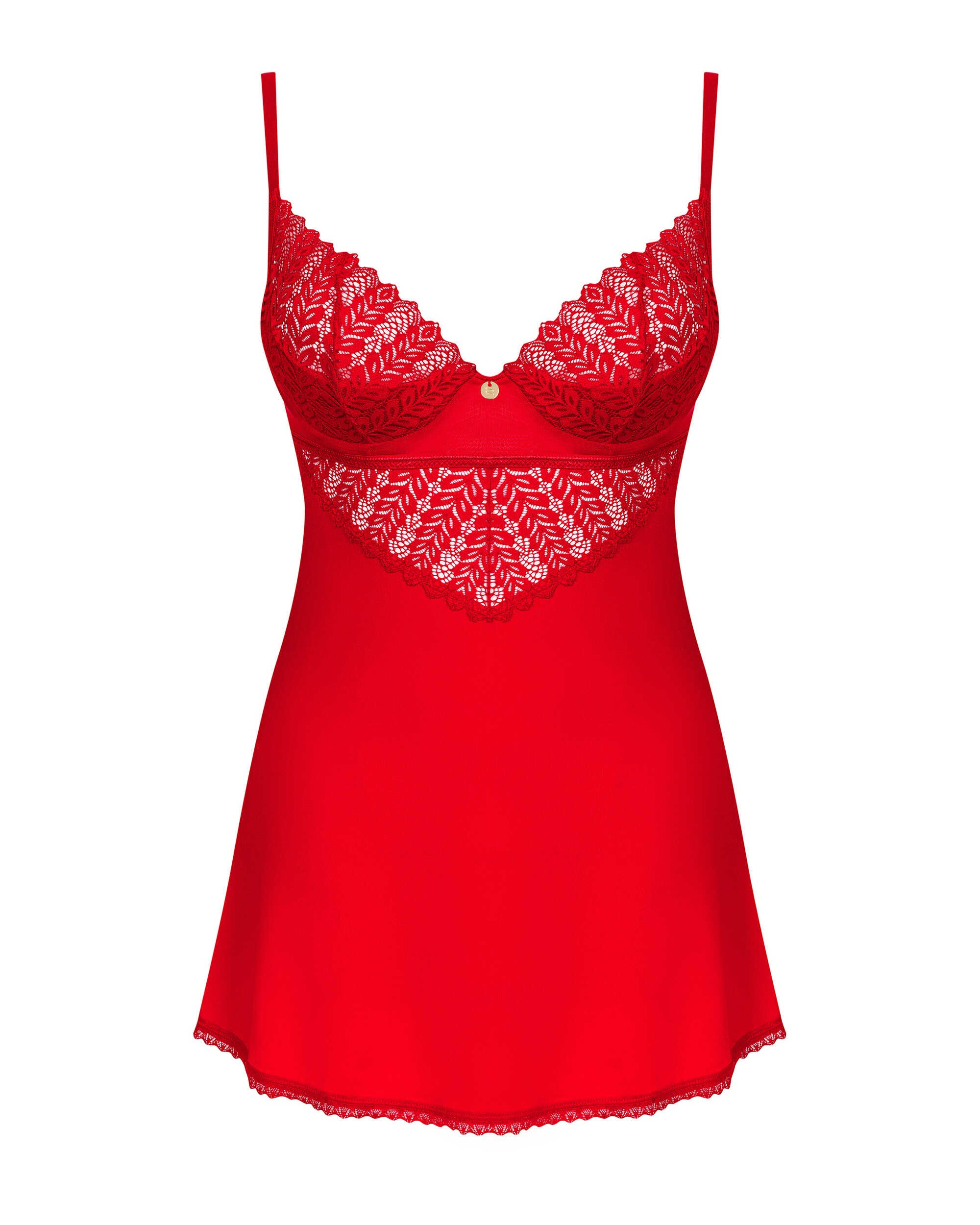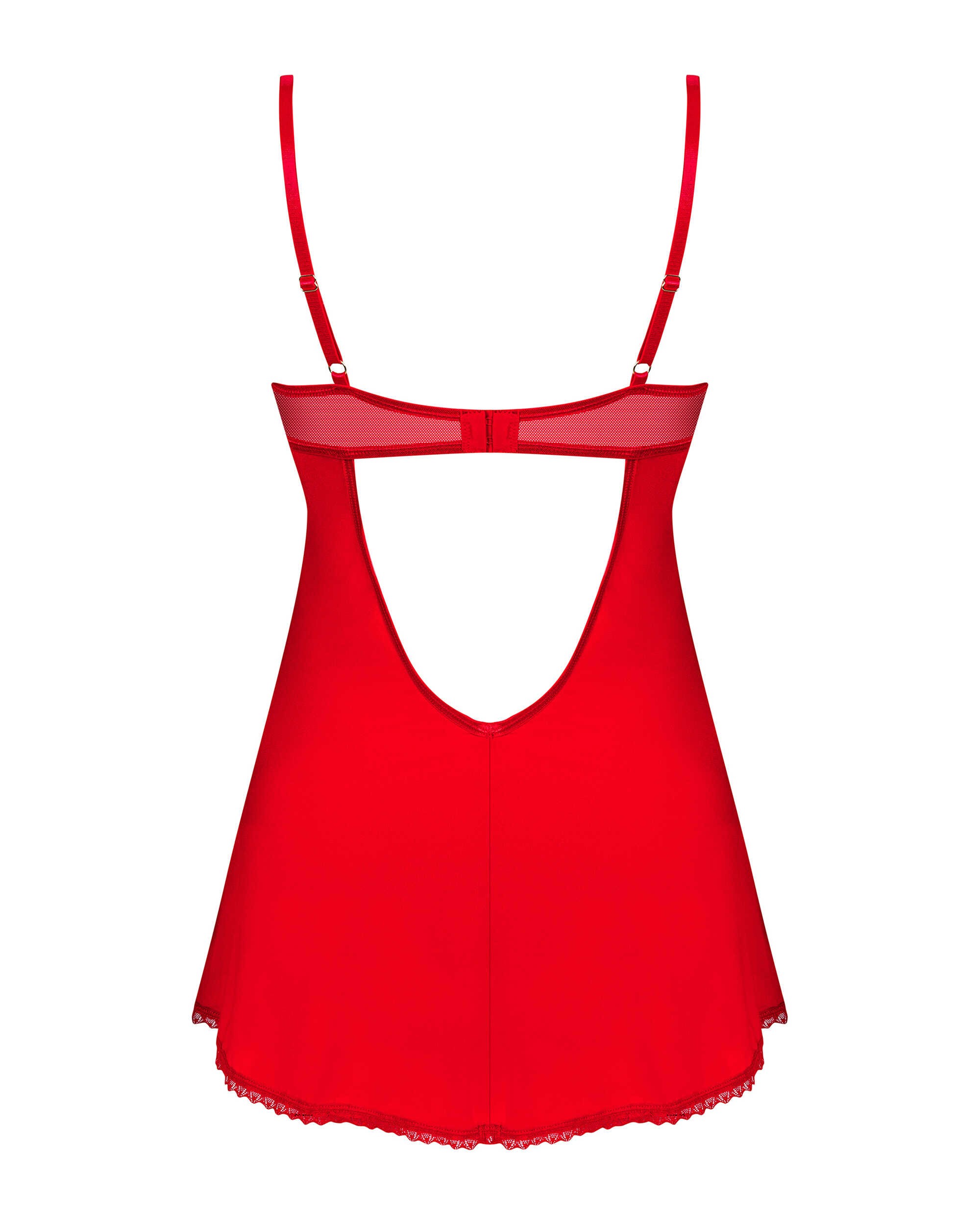 Vous aimez la lingerie sensuelle qui vous donne confiance en vous et vous rend séduisante ? Prenez soin de votre confort et de votre apparence avec cette nuisette unique. Sa coupe confortable, ses empiècements en dentelle finement travaillés et sa couleur attrayante mettront subtilement votre beauté en valeur. Soyez éblouissante à tout moment de la journée ! Plus de détails :- string et nuisette rouge- ajustement parfait grâce aux bretelles réglables et à la fermeture en plusieurs étapes- les bonnets rembourrés avec armatures assurent la beauté de la poitrine- inserts intéressants en dentelle- pendentif élégant – attire l’attention- tissu doux à haute élasticité – assure votre confort85 % polyamide, 15 % élasthanne