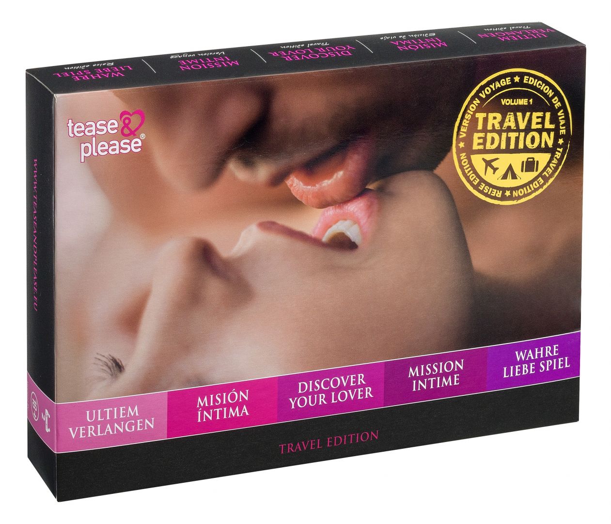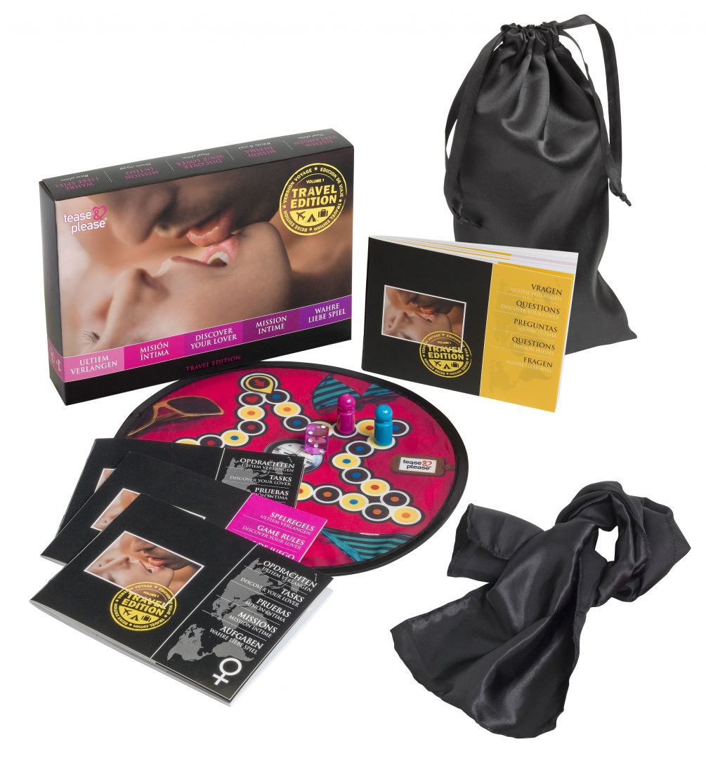 Retrouvez le célèbre jeu Mission Intime dans sa version allégé afin de pouvoir l’emmener facilement en voyage ou chez des amis Découvrez le monde et découvrez-vous ! Un jeu de voyage excitant pour une aventure érotique à deux.Pour un supplément d?érotisme en voyage, voici Mission Intime Version voyage ! Les vacances sont un moment privilégié pour réveiller la passion. Cette version voyage captivante du jeu érotique pour deux amoureux adultes (h/f), à présent mondialement connu, vous fait parcourir un itinéraire surprenant et semé de défis envoûtants qui vous mènera jusqu?à vos fantasmes les plus audacieux. Un jeu qui se joue sans jamais perdre de vue le respect de l?autre et de ses limites.Mission Intime a été lancé en 2007. Et quel succès ! Le jeu est édité en cinq langues et est joué dans le monde entier. C?est pour les amoureux une façon novatrice de se découvrir et de se rapprocher (encore plus) l?un de l?autre. La version voyage du jeu contient 99 questions et missions qui vous feront passer des vacances absolument inoubliables. Le but du jeu est le plaisir à deux, que l?on atteint par le biais de questions intimes et de missions excitantes. Le jeu a plusieurs niveaux et peut être configuré selon vos propres goûts. Le gagnant ou la gagnante verra se réaliser ses désirs ultimes. Découvrez réciproquement vos plus grands fantasmes … et réalisez ces rêves ! Cette version voyage contient un détail piquant : l?écharpe. Elle peut être utilisée comme bandeau ou … pour un bondage coquin. Et si après tout cela, vous avez envie de vous détendre autrement, vous pouvez utiliser le plateau de jeu comme frisbee. La jolie housse en satin vous permet d?emporter facilement et discrètement le jeu en voyage. Pour mettre dans vos vacances ce petit supplément d?érotisme qui en fera un moment d?évasion idéal !Mission Intime a été développé en coopération avec des sexologues. C?est un jeu excitant, qui ne porte pas atteinte à la femme etd ans lequel les partenaires se respectent. Tous les désirs, souhaits et rêves de l?homme et de la femme peuvent y être exprimés. Les questions et les missions de la Version voyage sont en cinq langues : néerlandais, espagnol, anglais, français et allemand. Découvrez des explications sur le jeux érotique Mission Intime en vidéo.