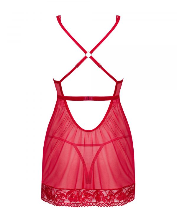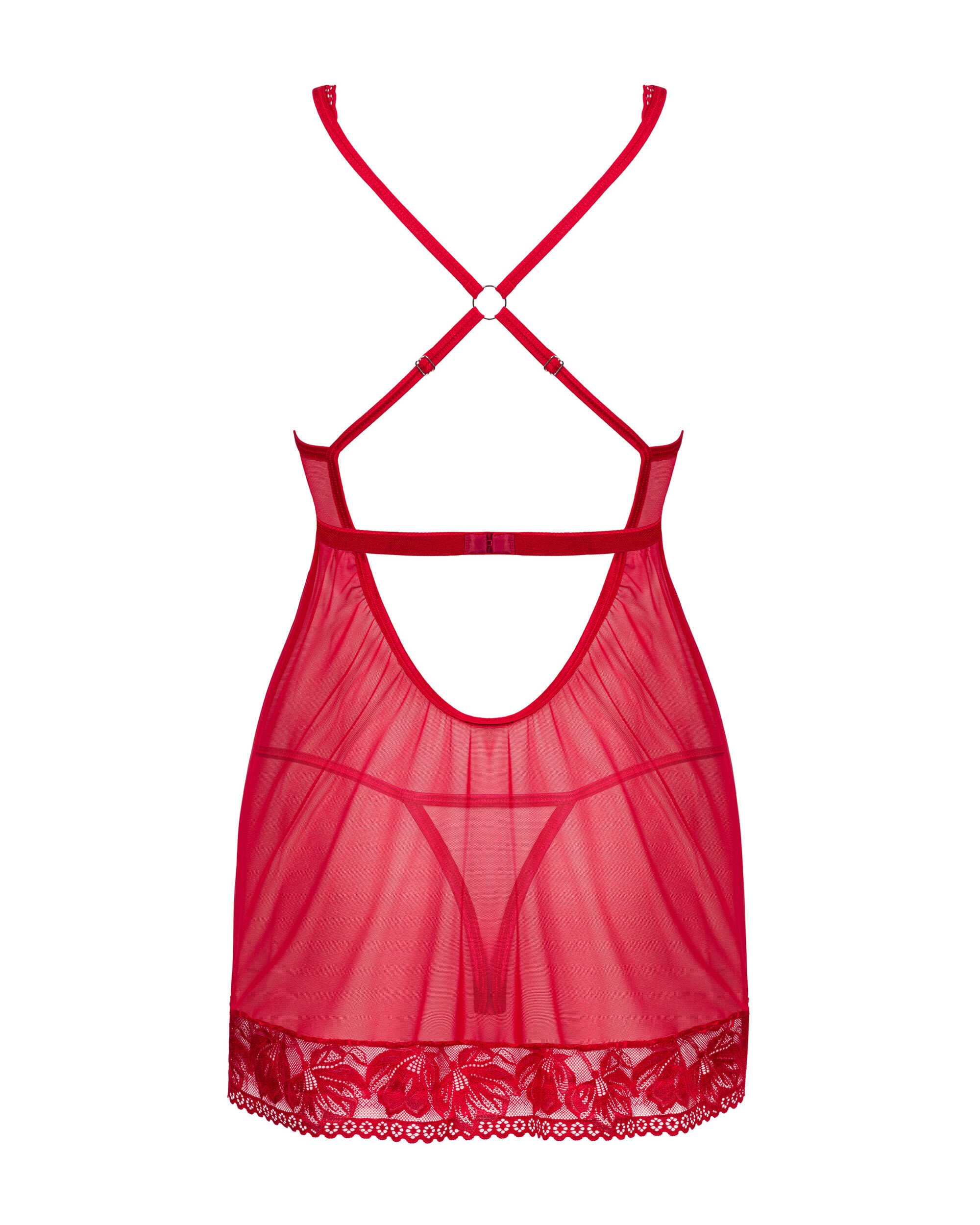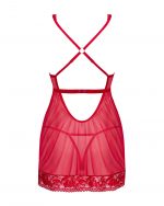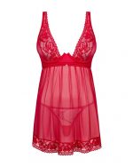 Nuisette Lacelove Vous êtes à la recherche d’un ensemble de lingerie qui enflammera vos sens ? Lacelove Babydoll et string est une recette pour des températures élevées torrides dans la chambre. Il suffit de regarder le tissu transparent et les détails en dentelle rouge intense. Prêt pour une nuit chaude pleine de passion ? Découvrez plus de détails :- nuisette et string rouge- ajustement parfait grâce aux bretelles réglables et à la fermeture à plusieurs niveaux- armatures soulignant la poitrine- dentelle séduisante – accrocheur- pendentif élégant – un détail intéressant- tissu agréable au toucher assurant le plus grand confort (babydoll : 94% polyamide, 6% élasthanne ; string : 90% polyamide, 10% élasthanne)