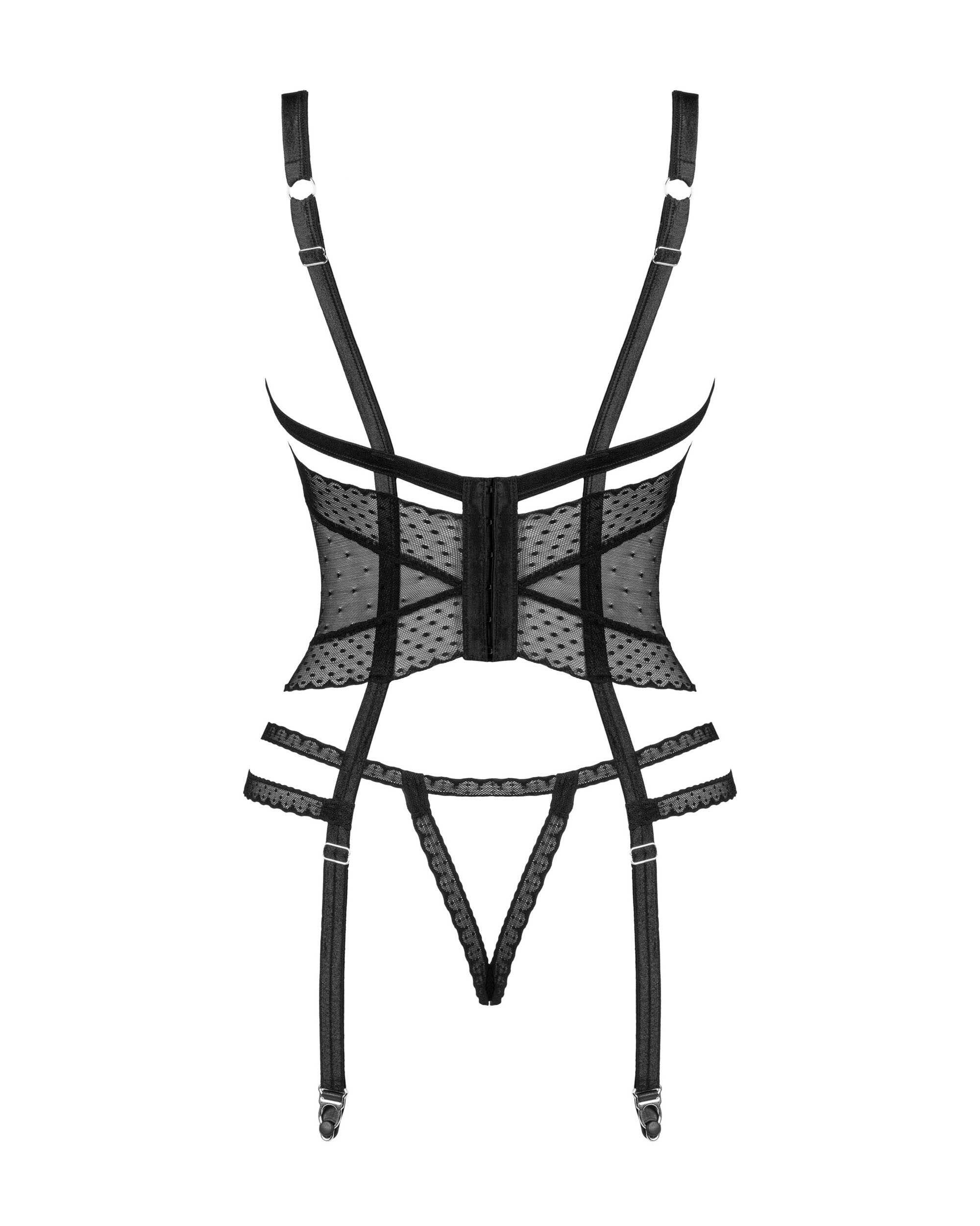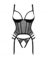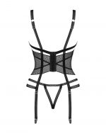 Corset Lanelia Le corset sensuel Lanelia saura pimenter vos soirées romantiques à deux ! Les bretelles sexy en combinaison avec une maille délicate et transparente sont une combinaison digne du péché, et la coupe ouverte permettra des plaisirs encore plus ludiques. Si vous souhaitez réchauffer l’ambiance au maximum, ajoutez-le à votre collection dès maintenant ! Découvrez plus de détails :- corset Lanelia noir- maille translucide sexy qui stimulera les sens- soutien-gorge ouvert – plus de piquant- bretelles réglables – un ajustement parfait- pendentif en argent sur le buste – attire l’attention et ajoute de l’élégance- fermeture à crochet et ?illet au dos- bretelles jarretelles réglables – confort de port- string avec un entrejambe ouvert – régalez-vous de la version max !- matière agréable au toucher (85% polyamide, 15% élasthanne)