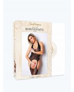 Dos nu sensuelL?attache au cou qui dénude le dos et qui offre un décolleté plongeant et envoutant, rend ce bodystocking terriblement sexy. La dentelle ajourée dévoile subtilement la peau et les courbes du corps en invitant aux désirs. Les bas-jarretières sublimeront vos cuisses. Doux et extensible, ce bodystocking épousera parfaitement les courbes de votre corps. Taille : universelle