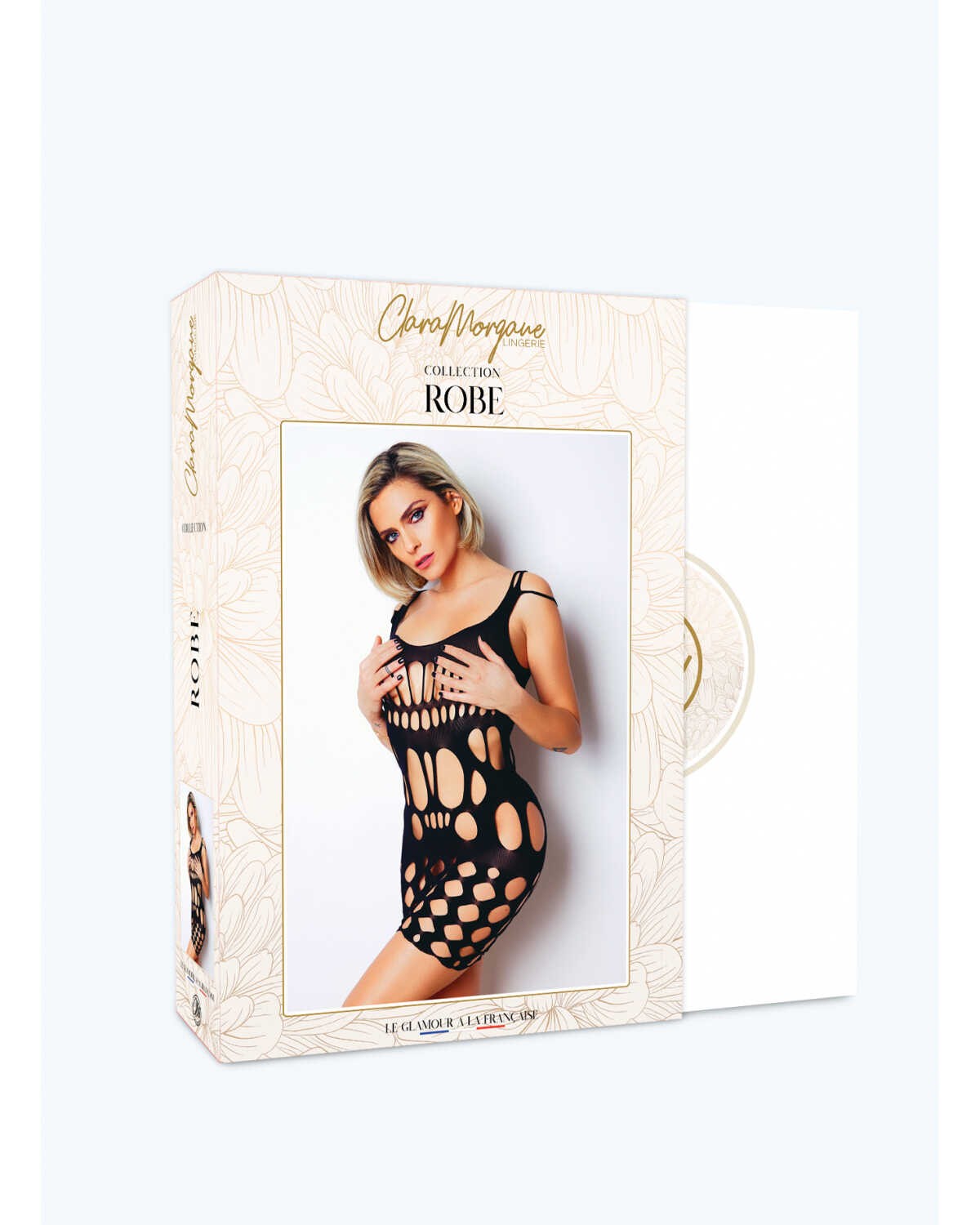 Robes et caresses Cette petite robe noire moulante épouse parfaitement votre silhouette. Ses ouvertures sont habilement placées puisqu?elles dévoilent les hanches, la taille et la poitrine. Les bretelles en lanières et l?encolure ronde subliment votre décolleté et vos épaules. Son tissu souple et extensible offre un effet seconde peau comme une caresse. Taille : universelle