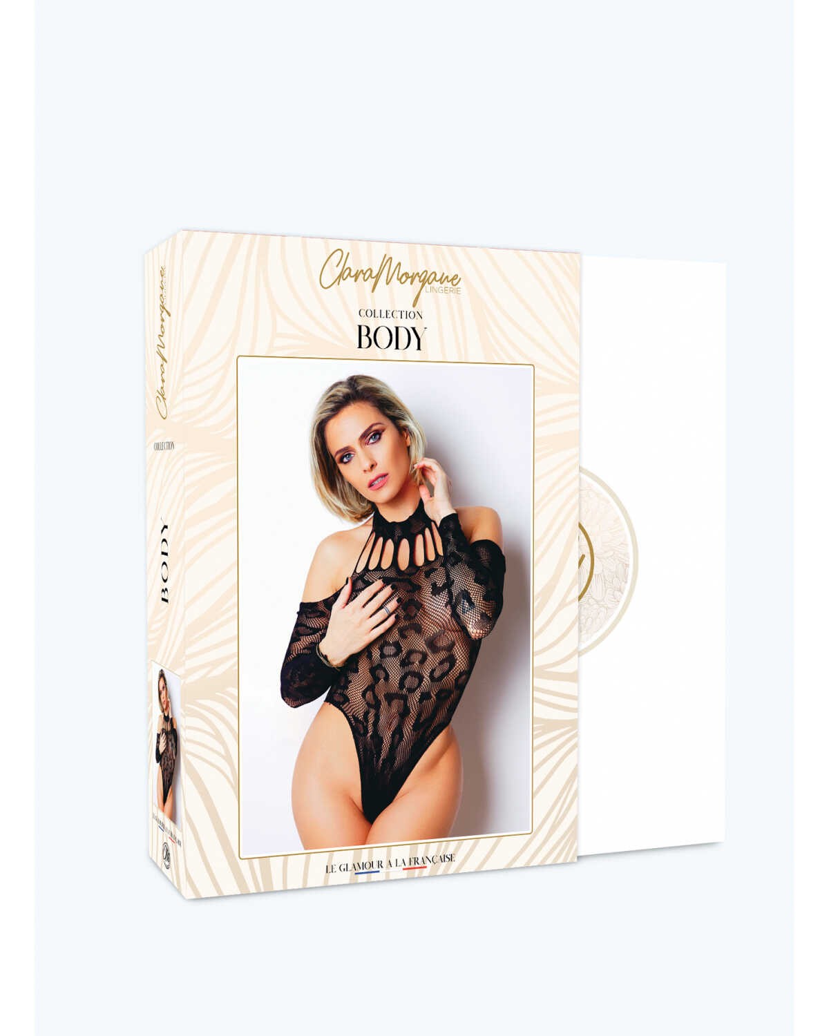 Félinement votreFéline et sexy : c?est la promesse de ce body surprenant. Il s?attache au cou, rehaussant la poitrine et dévoilant le dos. Les manches longues tombantes sur les épaules invitent aux baisers et aux caresses. Son tissu transparent aux motifs léopard révèle délicatement votre corps. L?échancrure libère vos hanche et vos fesses. La matière effet seconde peau de ce body s?adapte à toutes les formes de corps. Taille : universelle